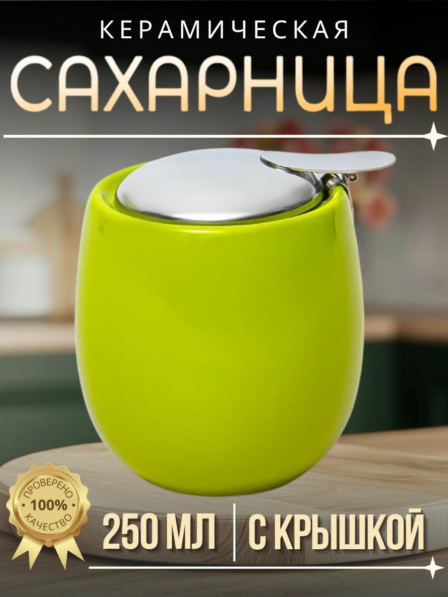 Сахарница Elrington ФЕЛИЧИТА, керамика, крышка, нержавеющая сталь, 250 мл, желтая/серебристая