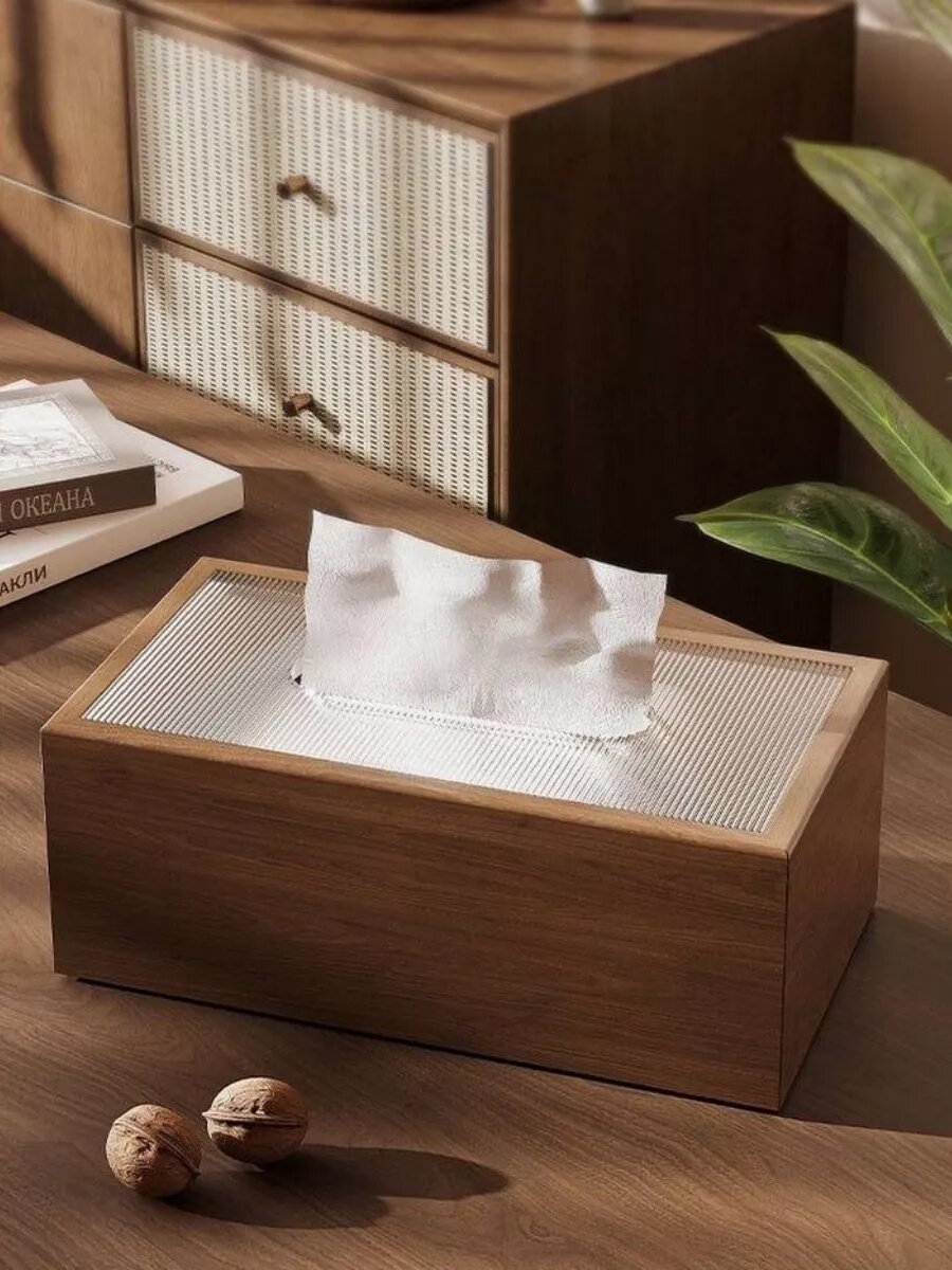 Деревянная салфетница интерьерная прямоугольная с крышкой и мягким дном интересное: