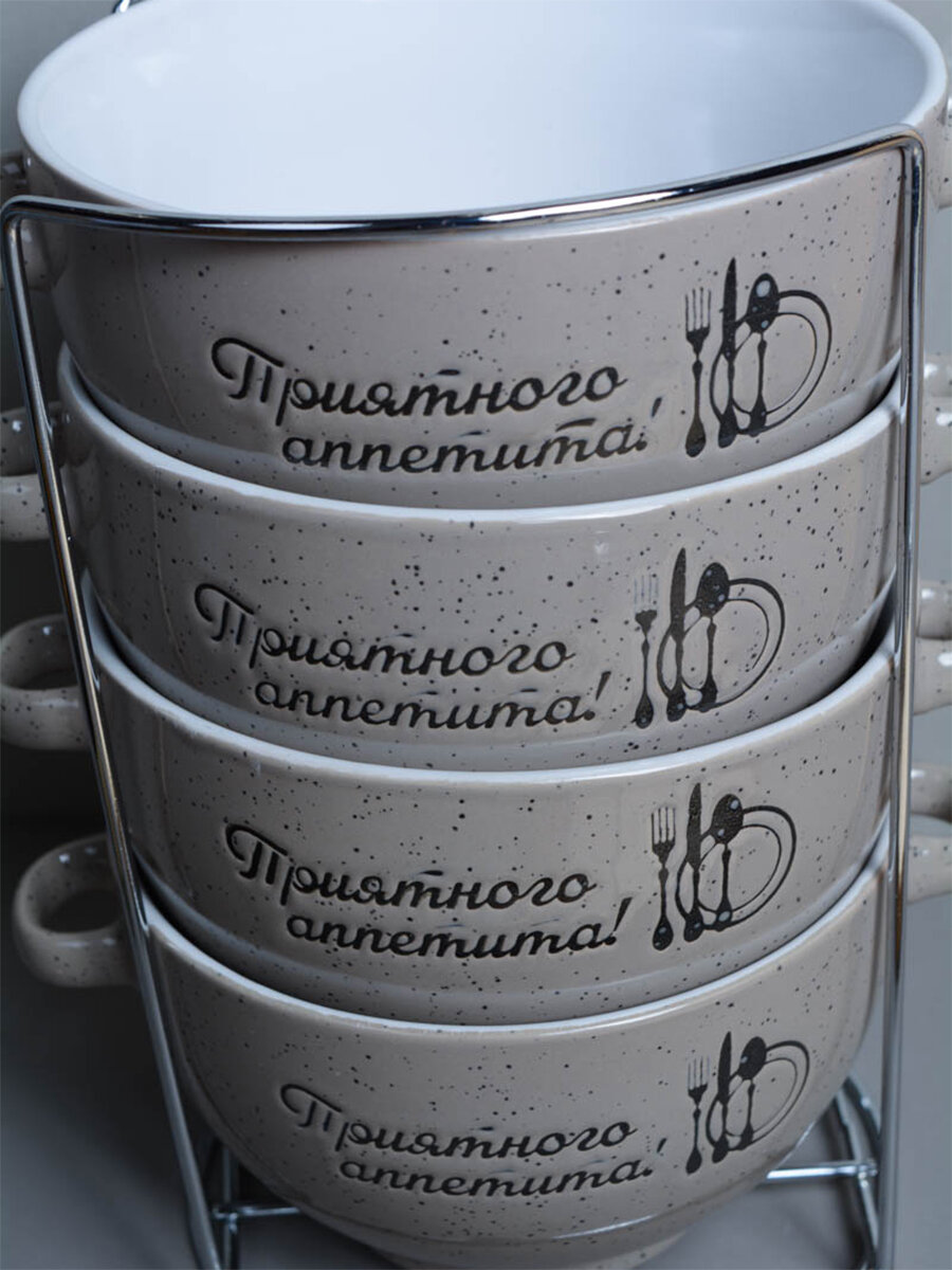 Супница с ручками 4 штуки на подставке Приятного аппетита интересное:
