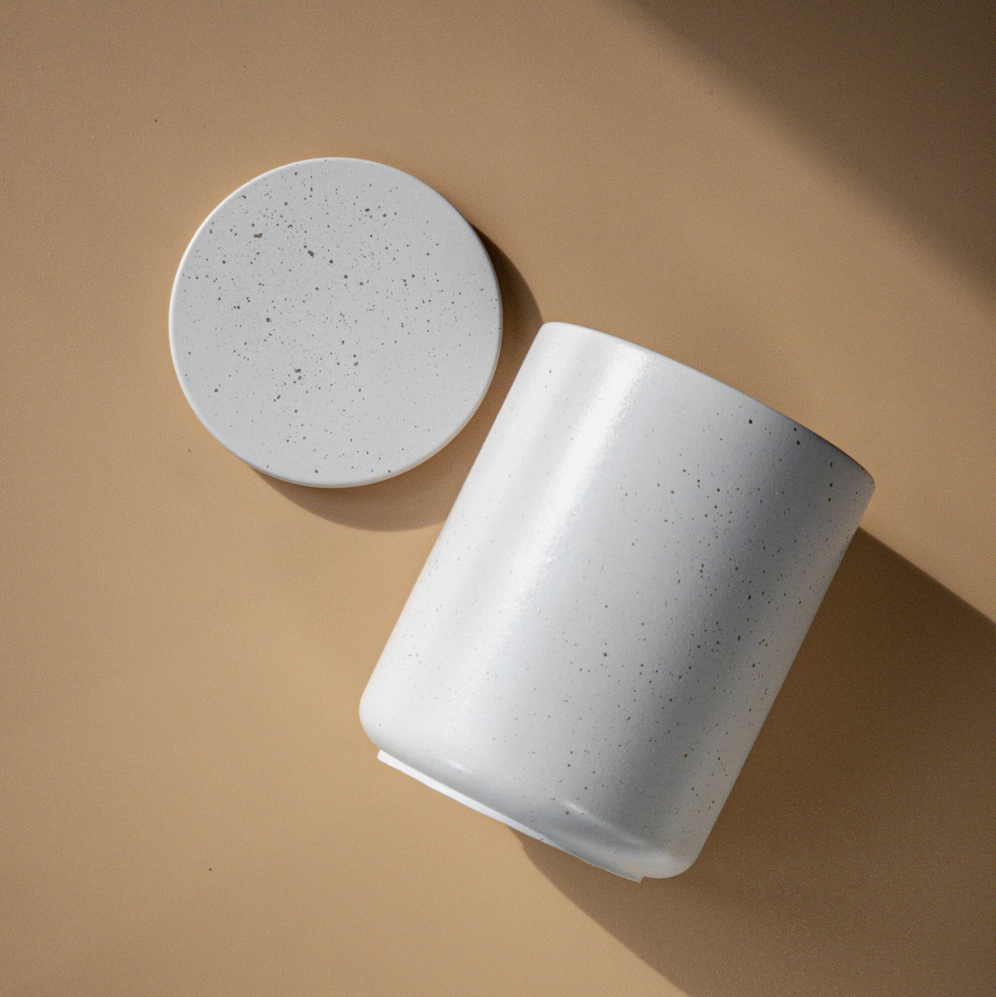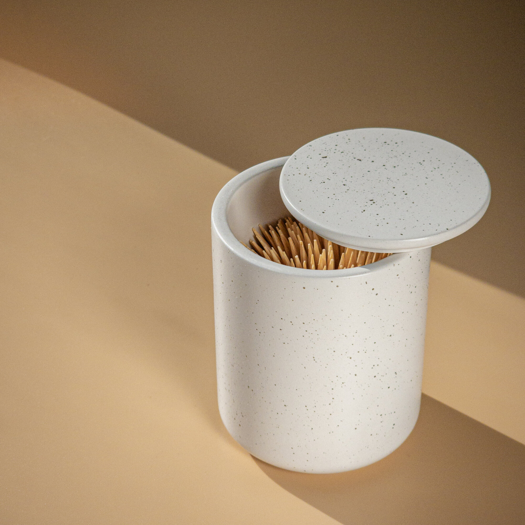 Стакан с крышкой Ashes Deco, ёмкость для зубочисток, 8x6см, белый с серыми брызгами