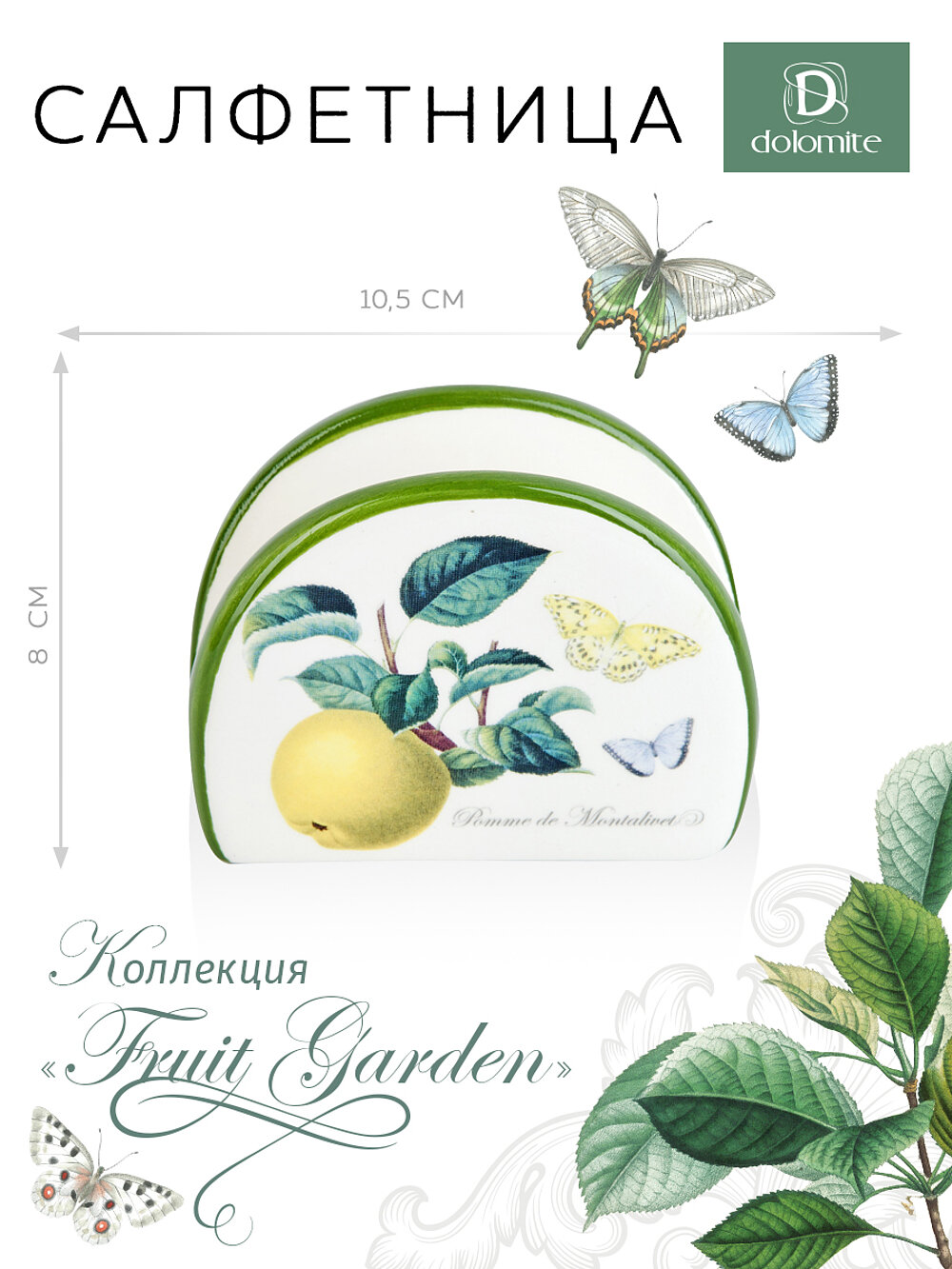 Салфетница керамическая "Fruit Garden", 10,5х4 см, Dolomite, подарочная коробка интересное: