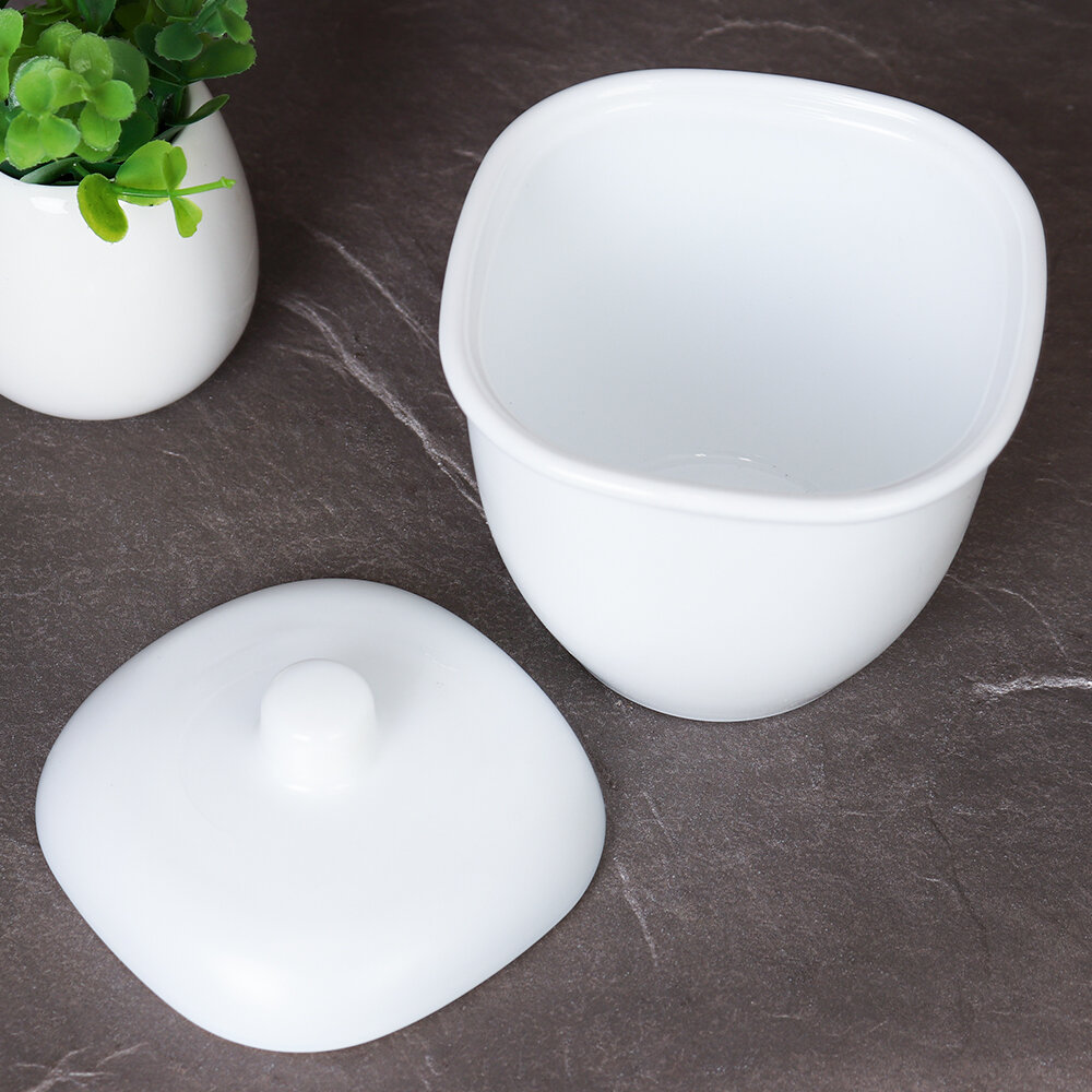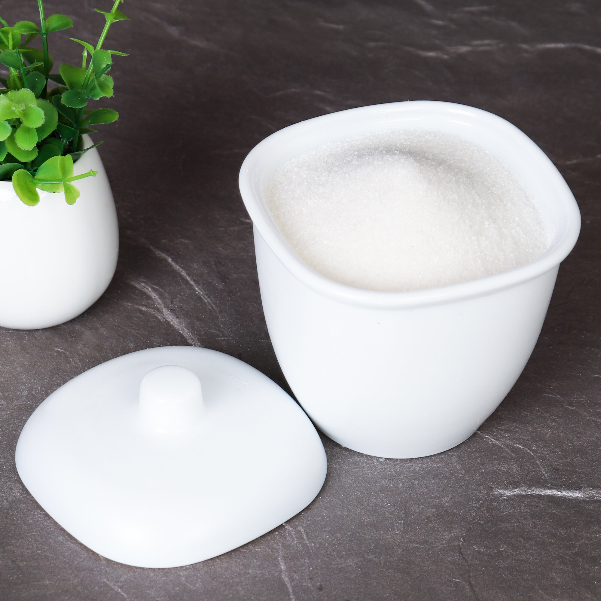 Купить Сахарница белая квадратная с крышкой 300 мл / Емкость для меда, орехов, конфет