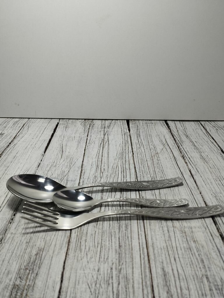 Набор столовых приборов, ложка, вилка, чайная ложка, на 3 персоны. Нытва. Серия уралочка