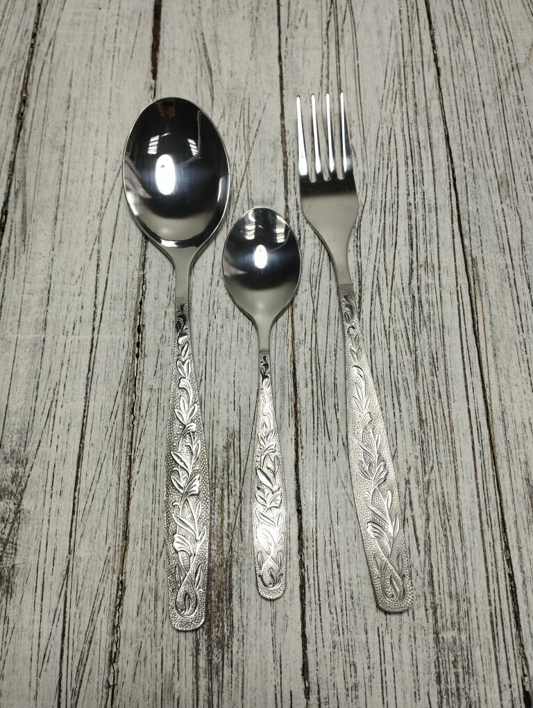 Набор столовых приборов, ложка, вилка, чайная ложка, на 1 персону. Нытва. Серия уралочка