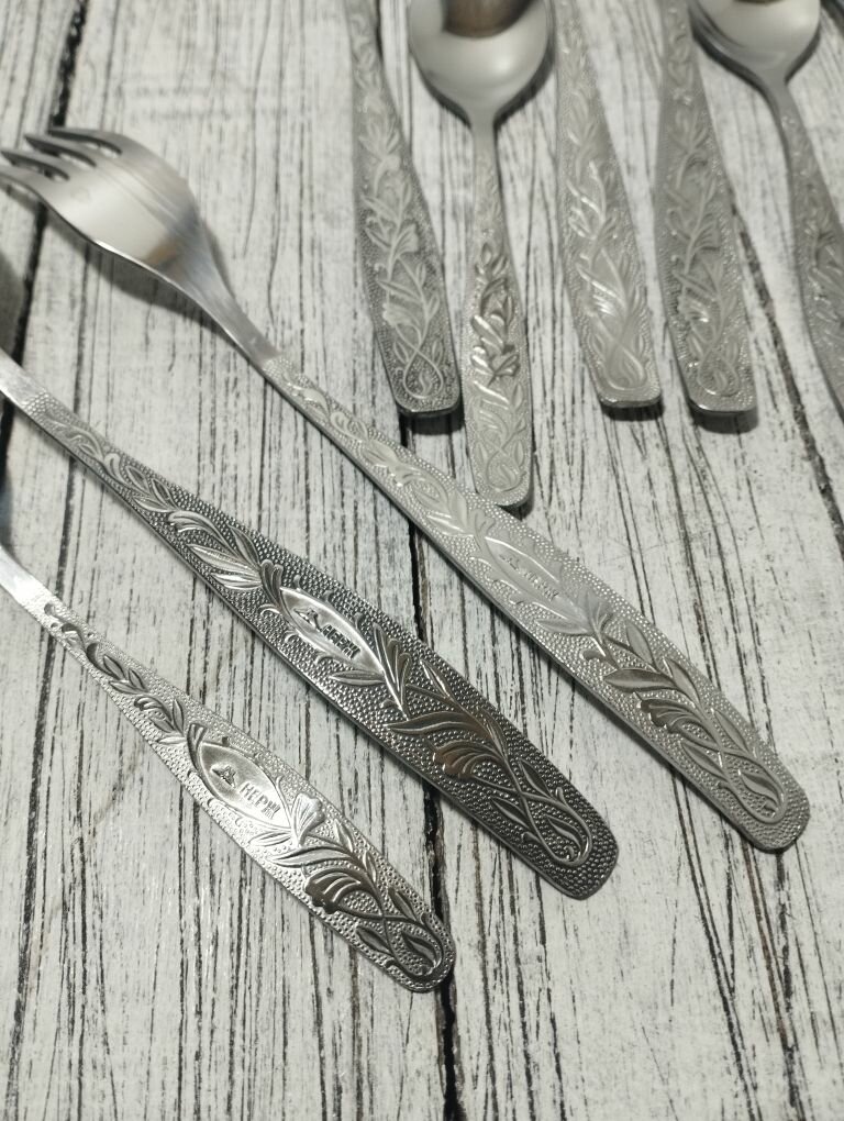 Набор столовых приборов, ложка, вилка, чайная ложка, на 6 персон. Нытва. Серия уралочка