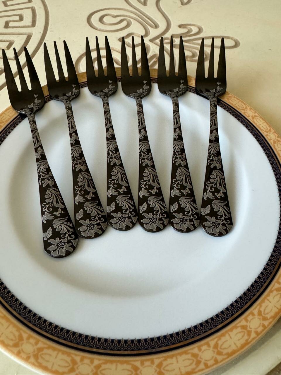 Купить Набор черных десертных вилок с цветочками, 6 штук в упаковке