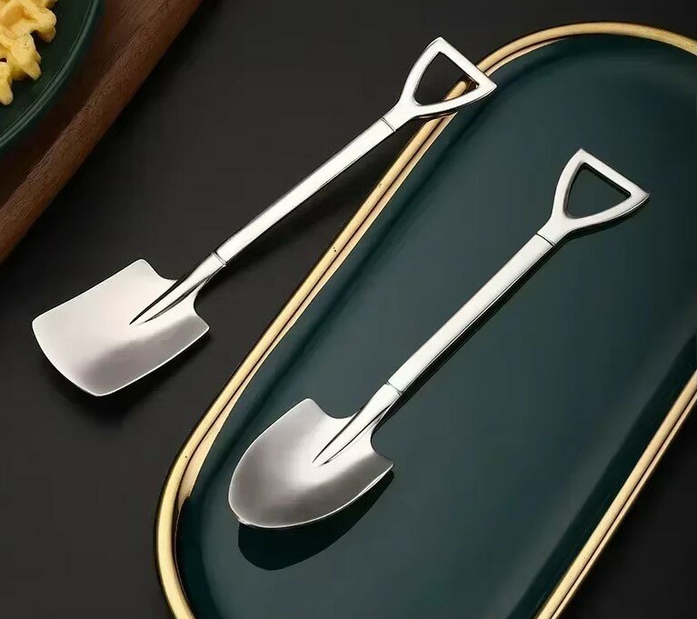 Набор чайных ложек Лопаты 2 шт серебристые, десертные, для чая, кофе, столовые приборы сувенирные, подарочный набор интересное: