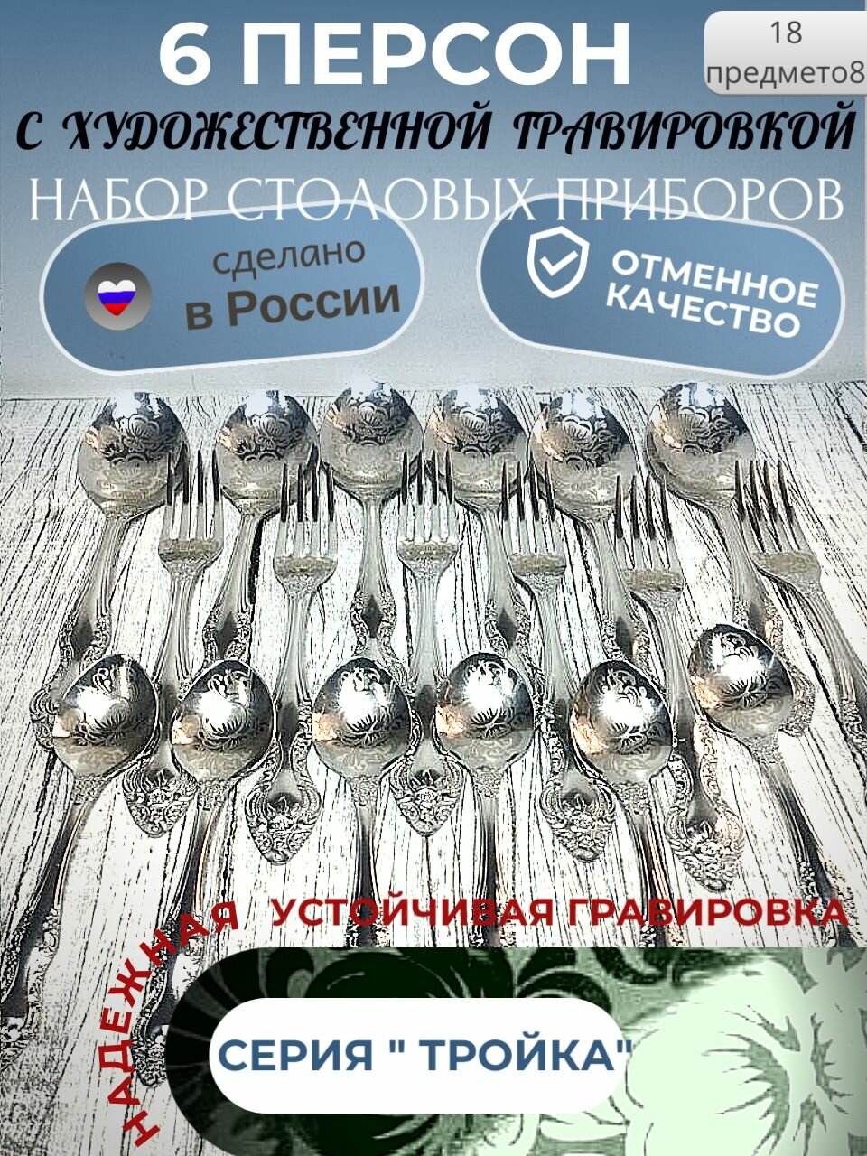 Ниже Вы можете прочитать отзывы на Набор столовых приборов, ложка, вилка, чайная ложка, на 6 персон с гравировкой. Павловский завод. Серия тройка, ознакомится с подробными характеристиками, посмотреть интересные обзоры и фотографии на Набор столовых приборов, ложка, вилка, чайная ложка, на 6 персон с гравировкой. Павловский завод. Серия тройка.