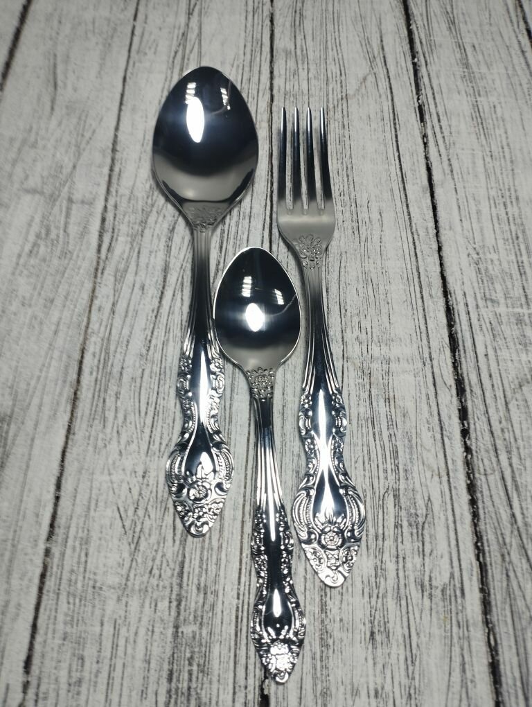 СохранитьНабор столовых приборов, ложка, вилка, чайная ложка, на 1 персону. Павловский завод. Серия тройка интересное: