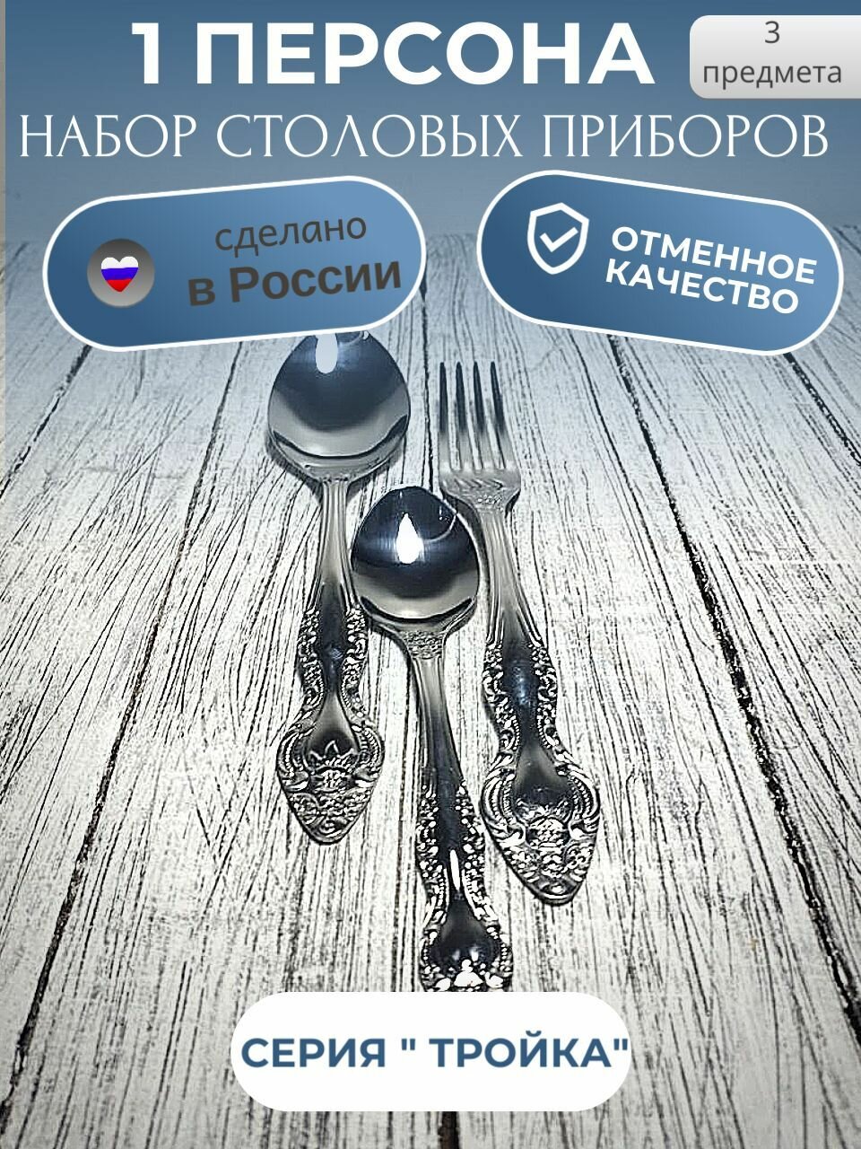 Купить Набор столовых приборов, ложка, вилка, чайная ложка, на 1 персону. Павловский завод. Серия тройка