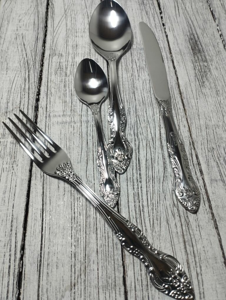 Ниже Вы можете прочитать отзывы на Набор столовых приборов, ложка, вилка, чайная ложка, нож на 2 персоны. Павловский завод. Серия тройка, ознакомится с подробными характеристиками, посмотреть интересные обзоры и фотографии на Набор столовых приборов, ложка, вилка, чайная ложка, нож на 2 персоны. Павловский завод. Серия тройка.