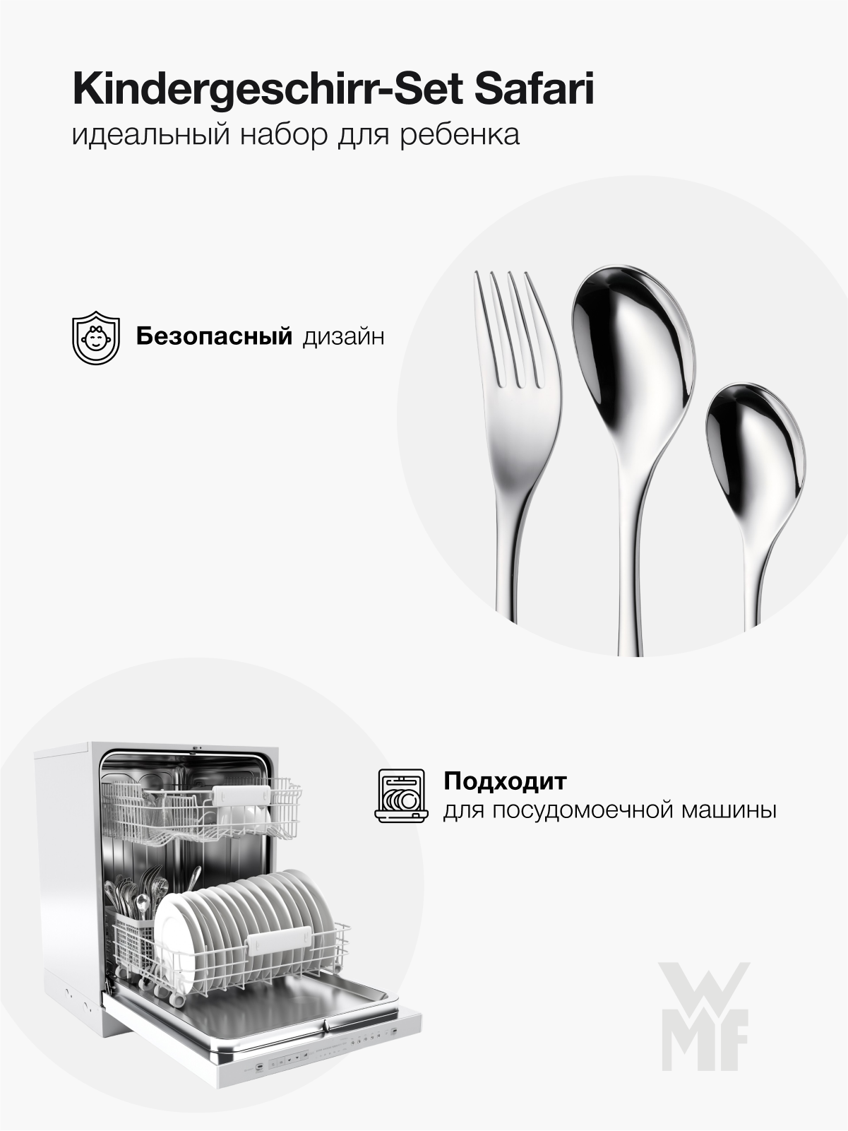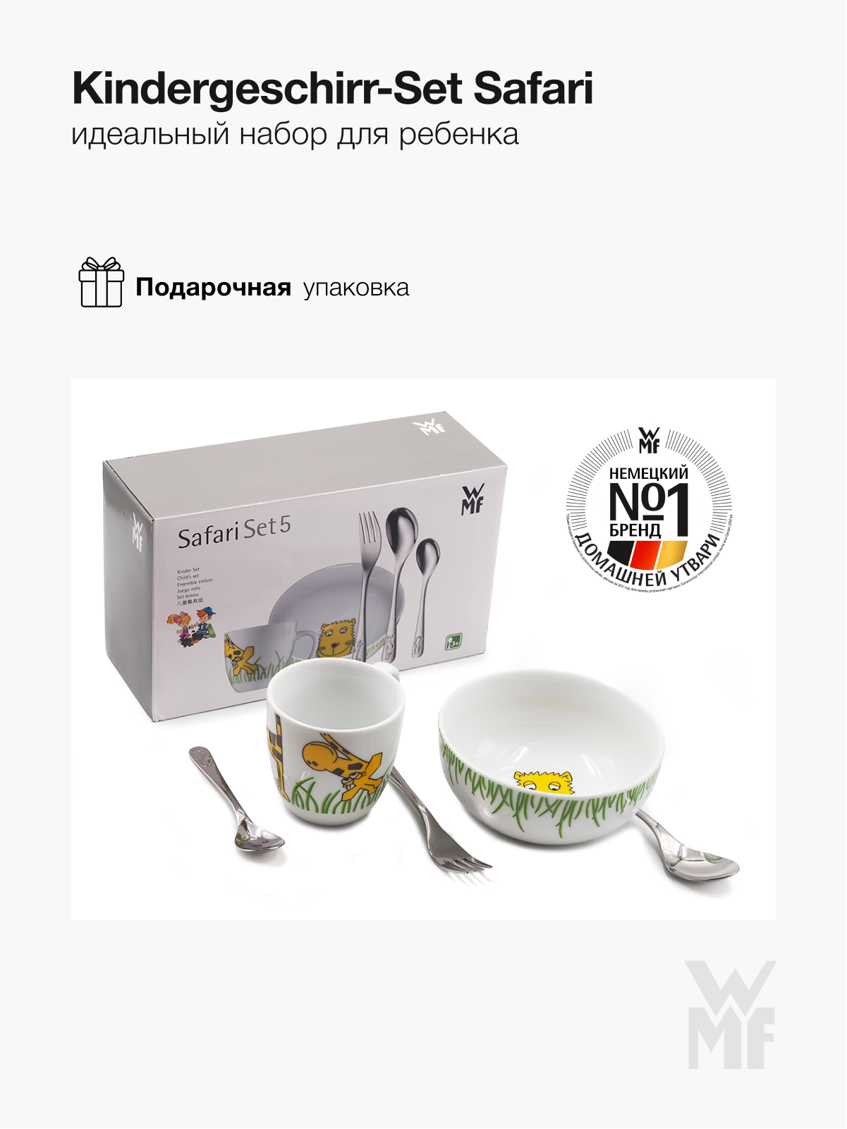 Набор детской посуды WMF Safari. Фарфоровые тарелка и кружка, столовые приборы из нержавеющей стали интересное: