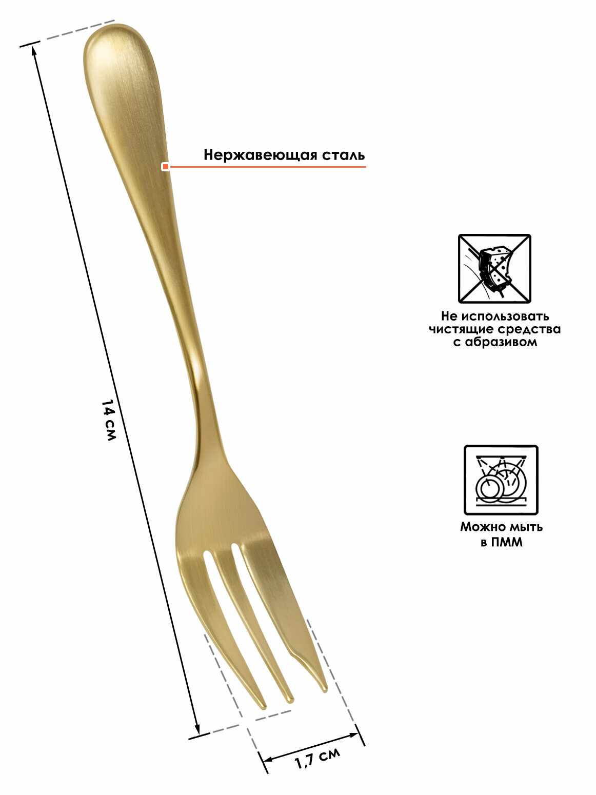 Вилка десертная для торта, пирожных 14х1,7х1,2 см, золотистая интересное: