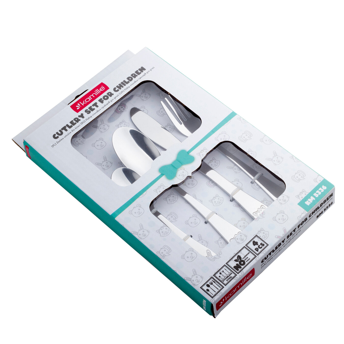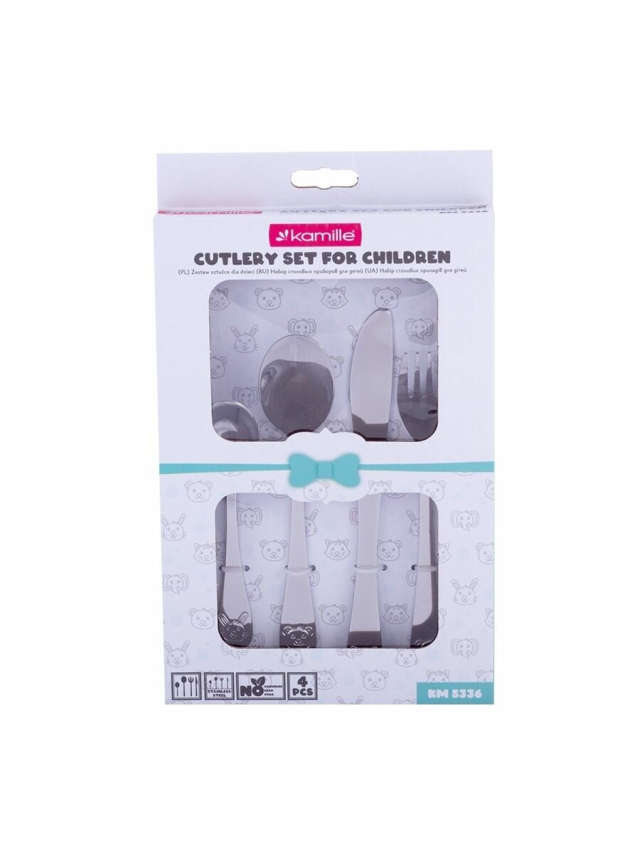 Купить Набор детских столовых приборов 4 предмета Kamille KM 5336 из нержавеющей стали (серебристый)
