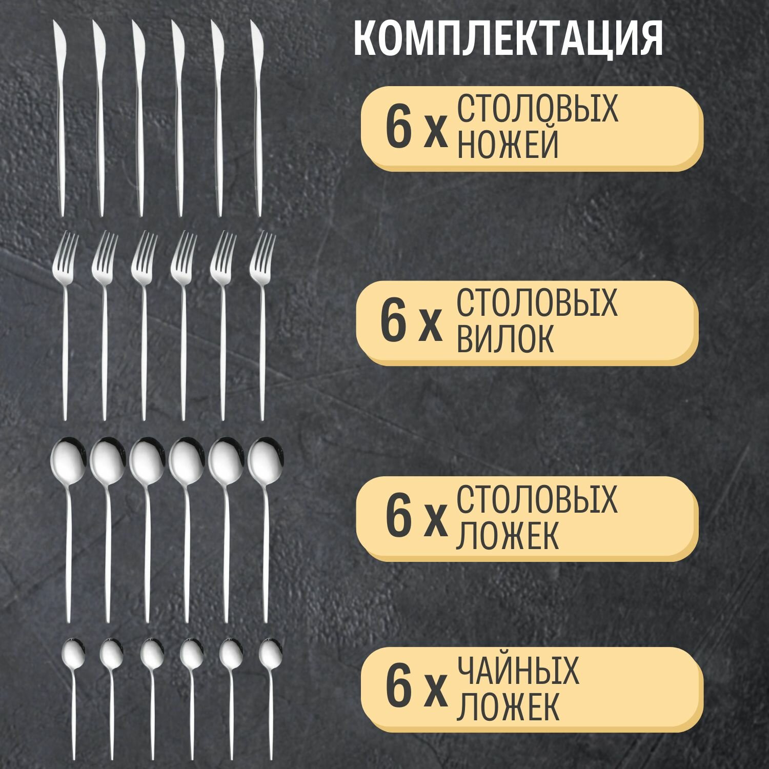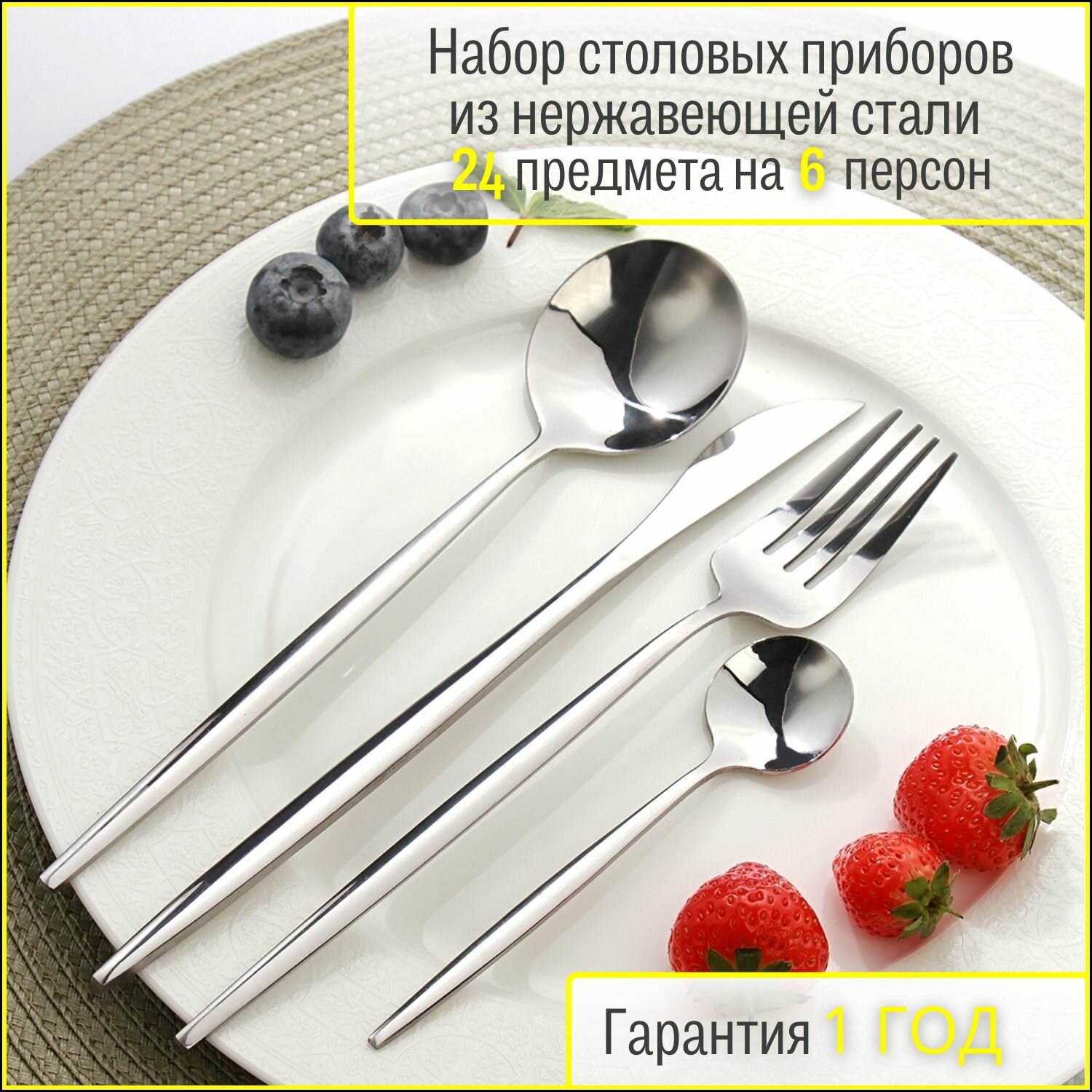 Набор круглых столовых приборов 24 предмета серебро интересное:
