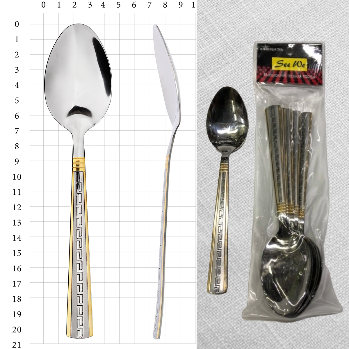 Купить Ложки столовые из нержавеющей стали набор 6 шт. с греческим орнаментом