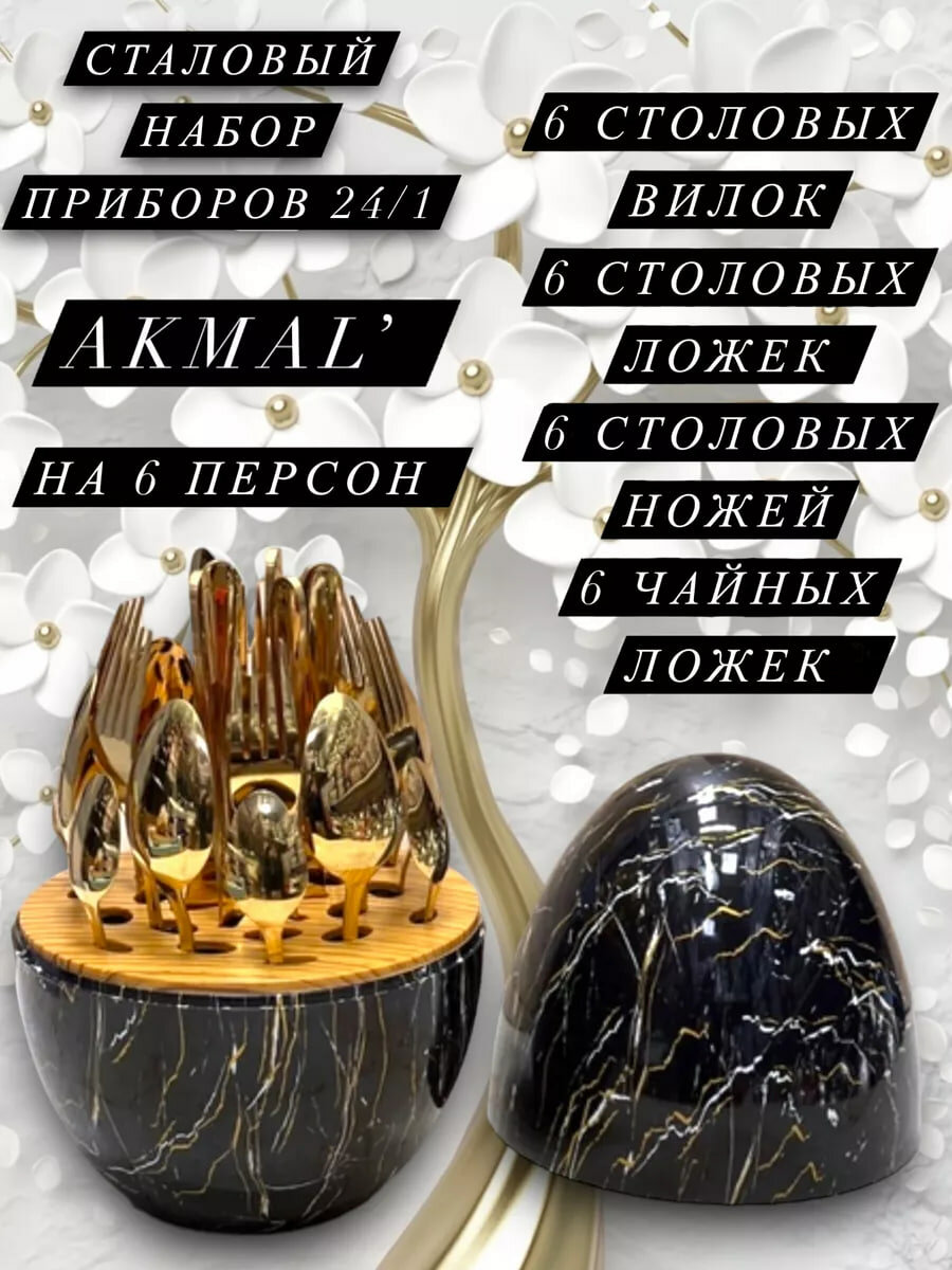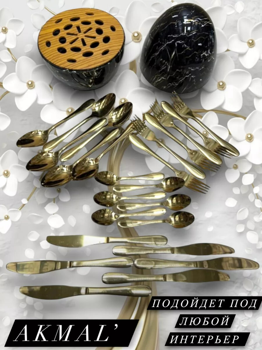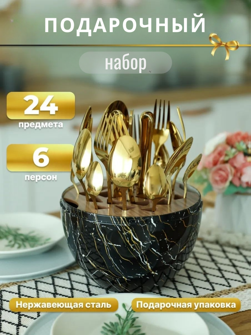 Подарочный набор столовых приборов, нержавеющая сталь, золотистый, 6 персон, 24шт интересное: