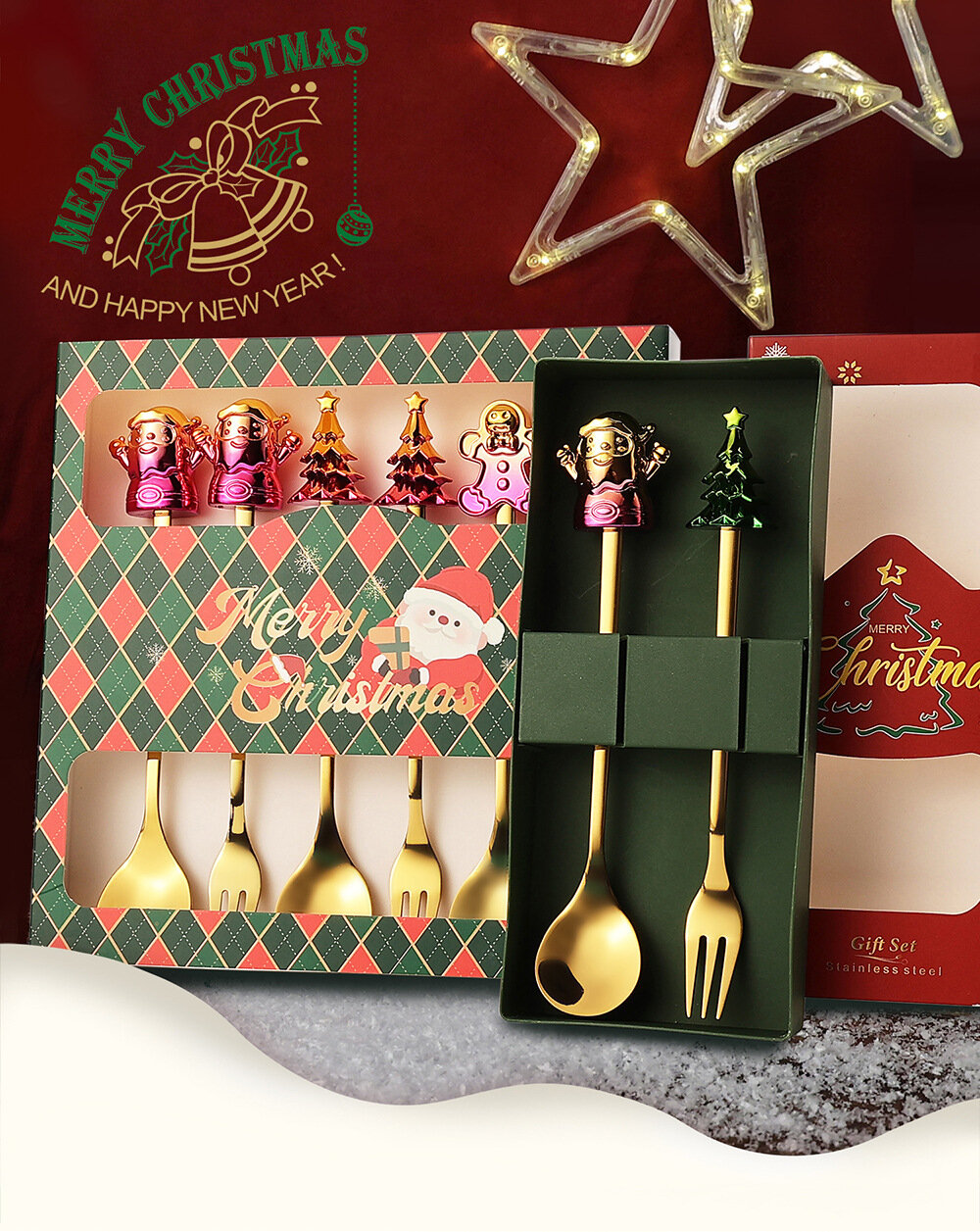 Купить Новогодний подарочный набор 2025. Десертные/кофейные/чайные ложки, вилки.