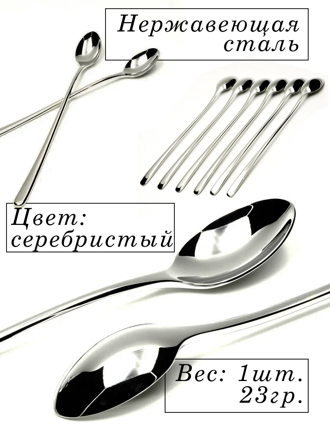 Ложки чайные с длинной ручкой кофейные набор 6 штук из нержавеющей стали интересное: