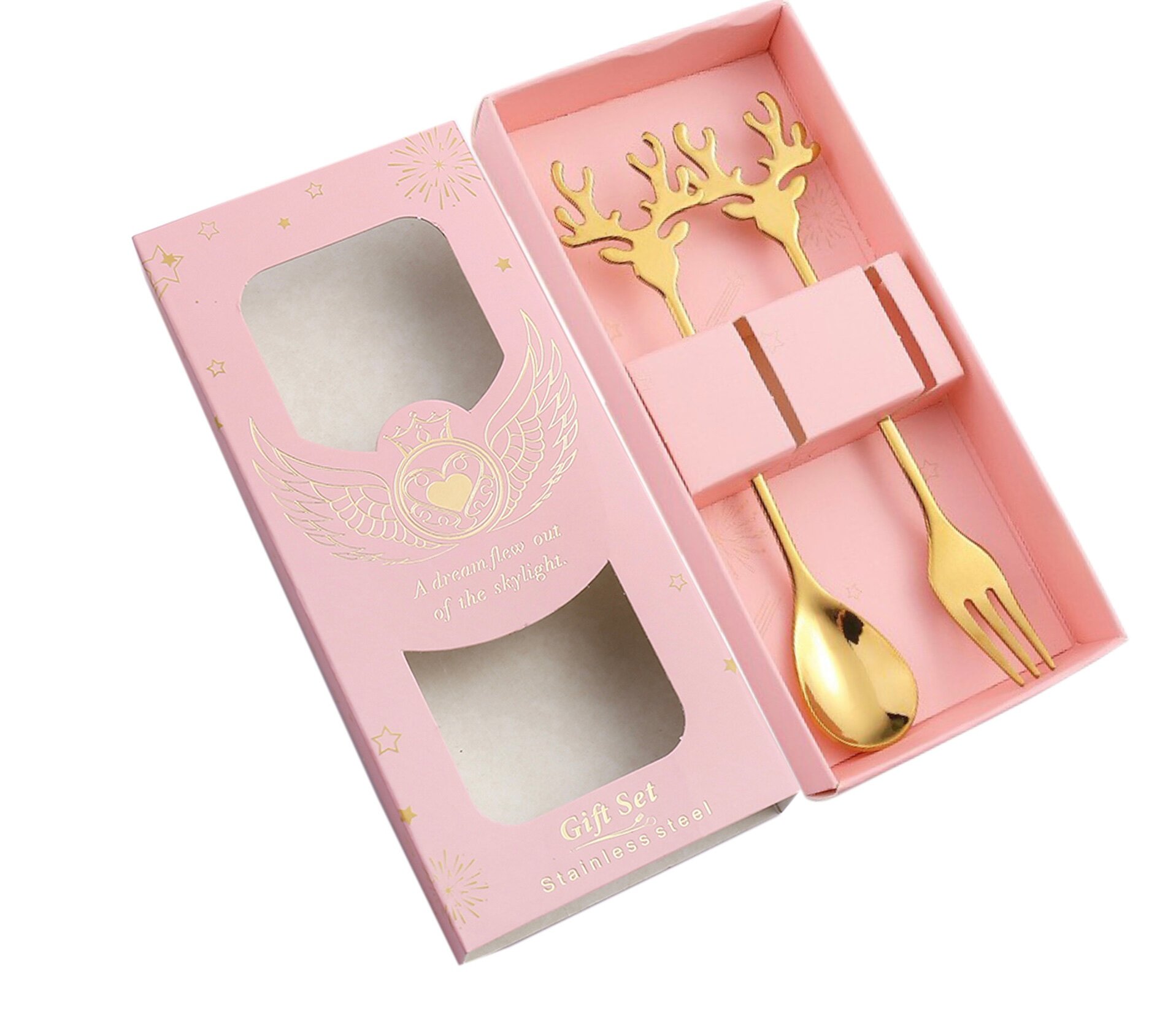 Подарочный набор столовых приборов "Новогодние Олени", нержавеющая сталь, розовый интересное:
