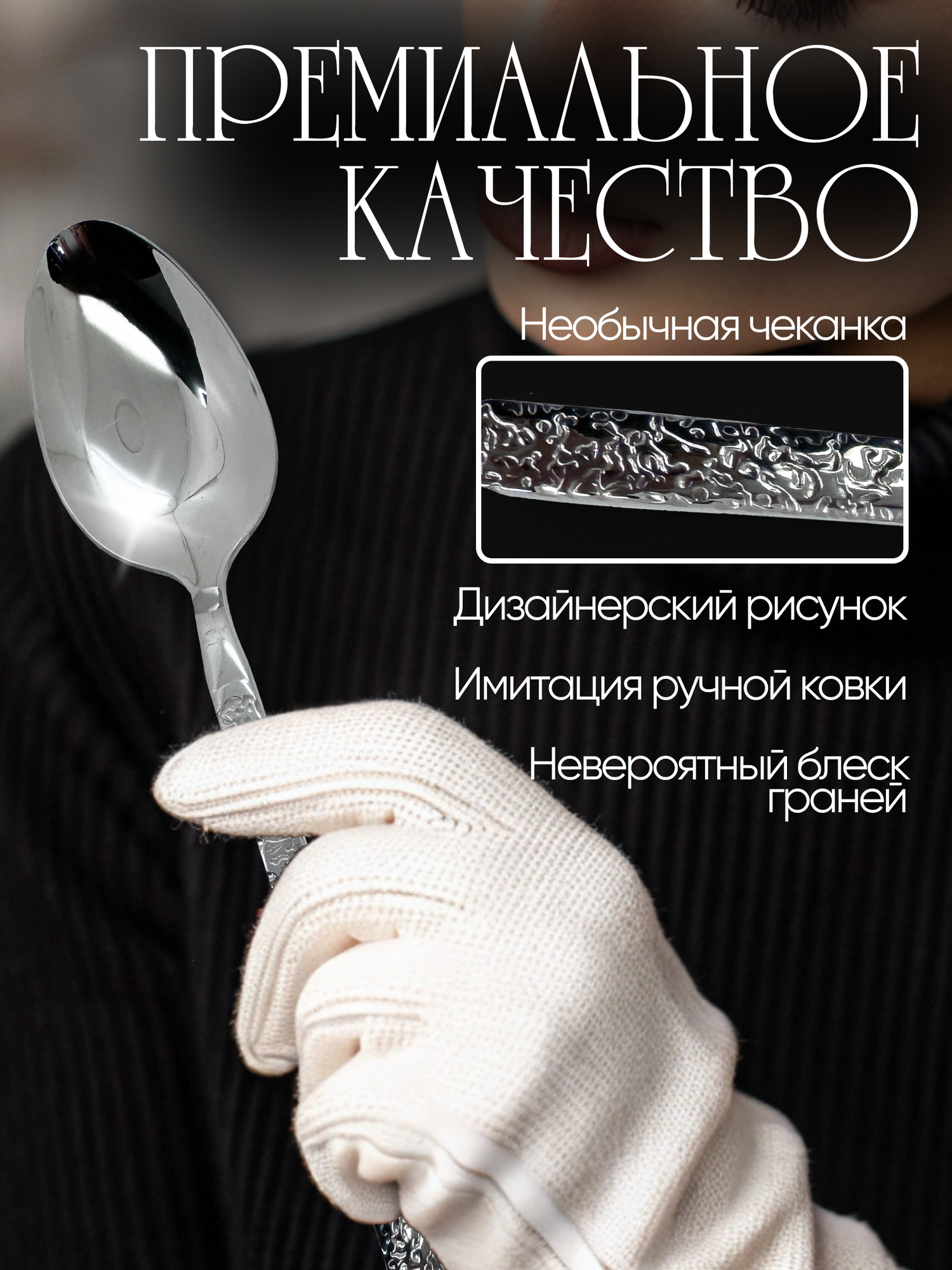 Набор столовых приборов "Необычная чеканка", 24 предмета на 6 персон, нержавеющая сталь