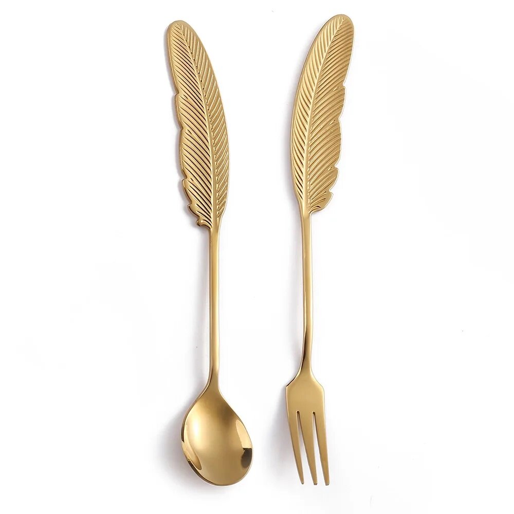 Купить Набор десертных приборов Ложка Вилка "Перышко" / золотистые 4 шт