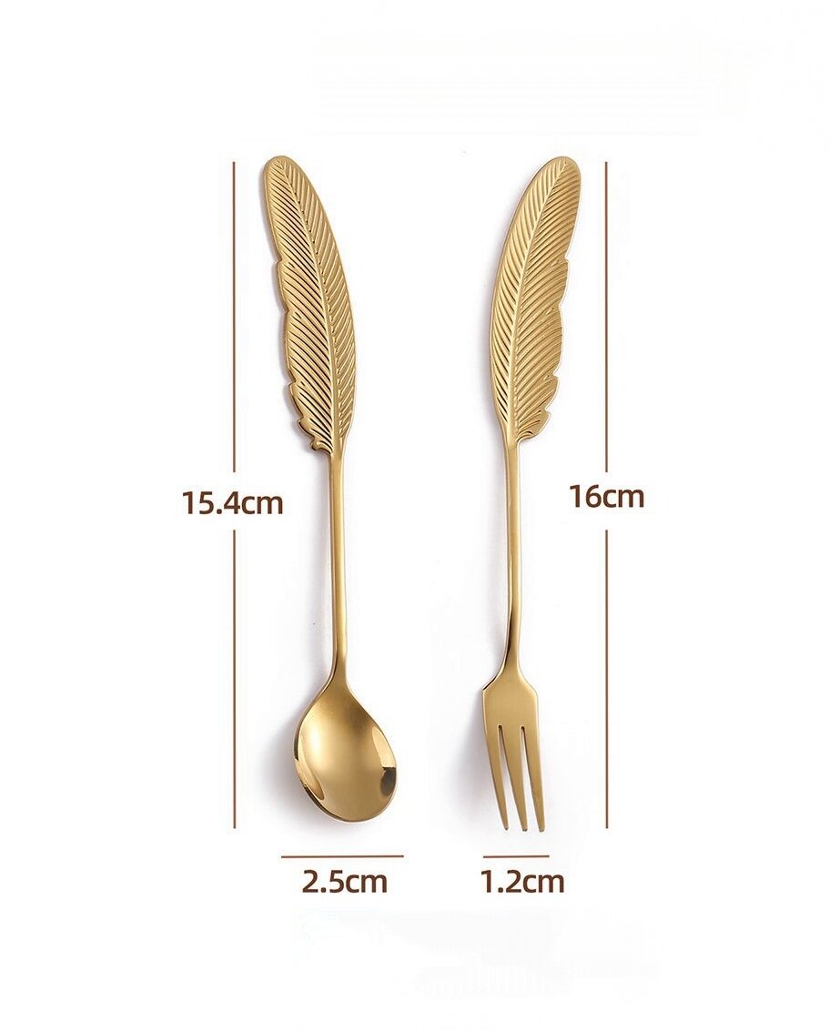 Набор десертных приборов Ложка Вилка "Перышко" / золотистые 4 шт интересное: