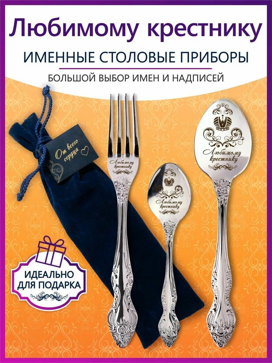 СохранитьИменные столовые приборы набор "Любимому крестнику" из нержавеющей стали на 1 персону от "Pro100laser" интересное: