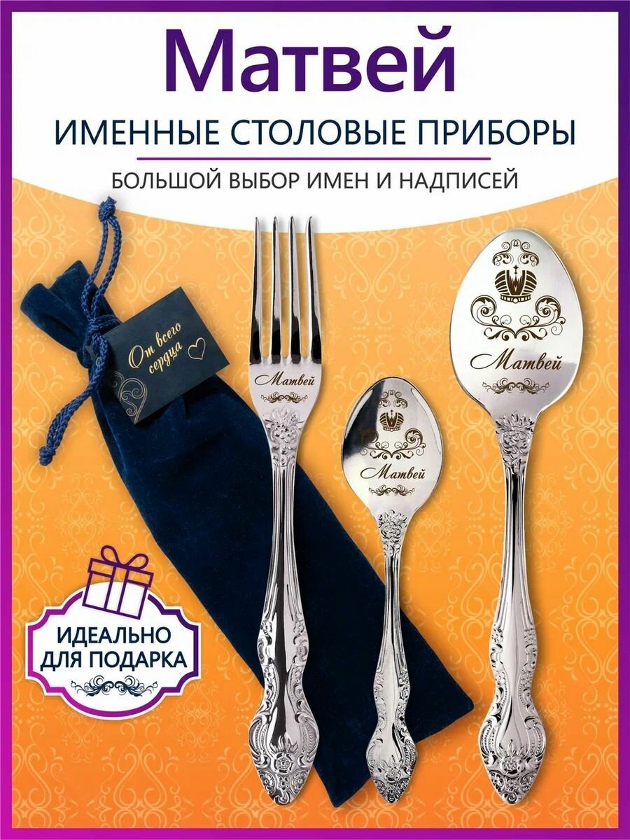 СохранитьИменные столовые приборы набор "Матвей" из нержавеющей стали на 1 персону от "Pro100laser" интересное: