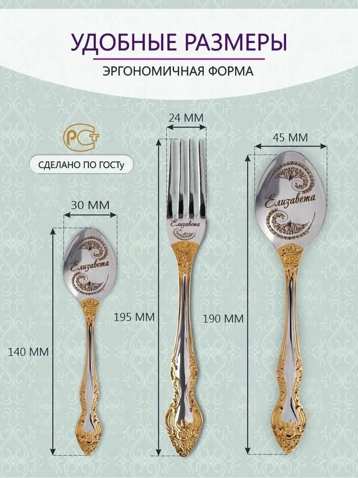 СохранитьИменные столовые приборы Елизавета из 3-х предметов в подарочном мешочке интересное: