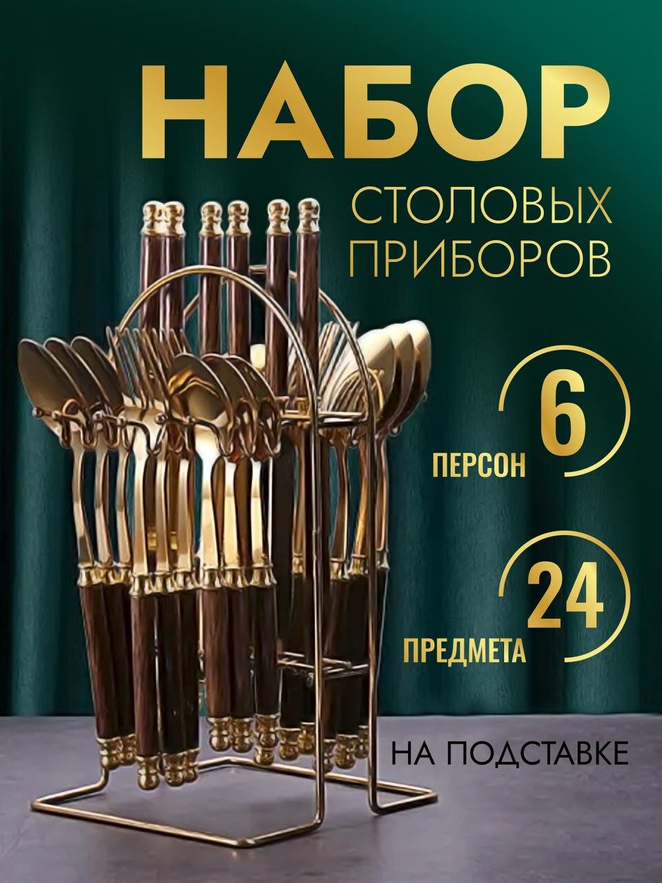 Набор столовых приборов 24 предмета на 6 персон коричневый интересное:
