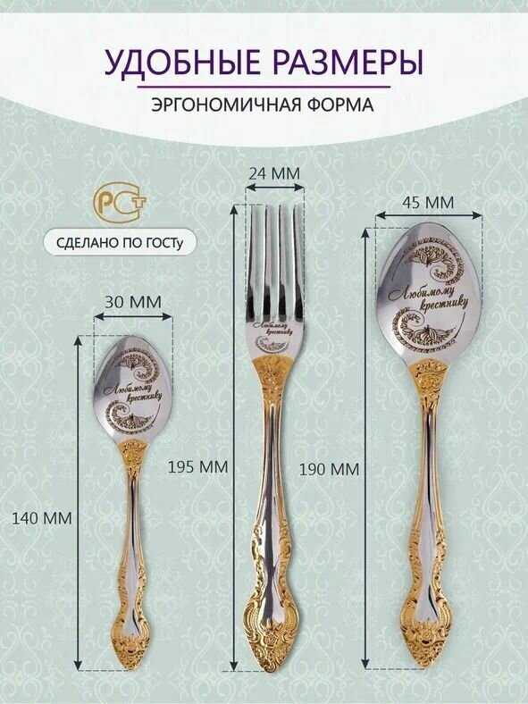 СохранитьИменные столовые приборы Любимому крестнику из 3-х предметов в подарочном мешочке интересное: