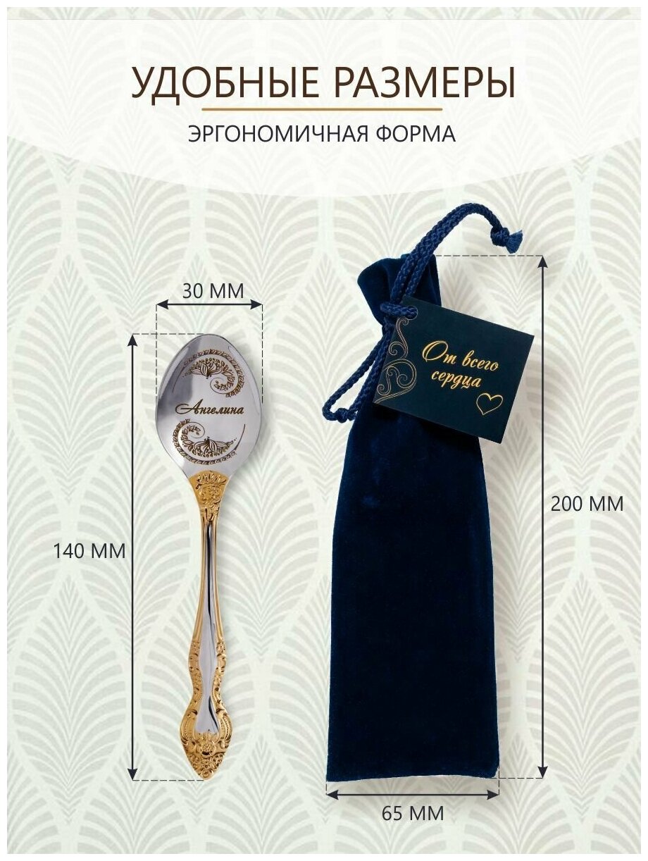 СохранитьИменная чайная ложка Ангелина идеальный подарок женщине, маме, девушке, сестре, жене, подруге интересное: