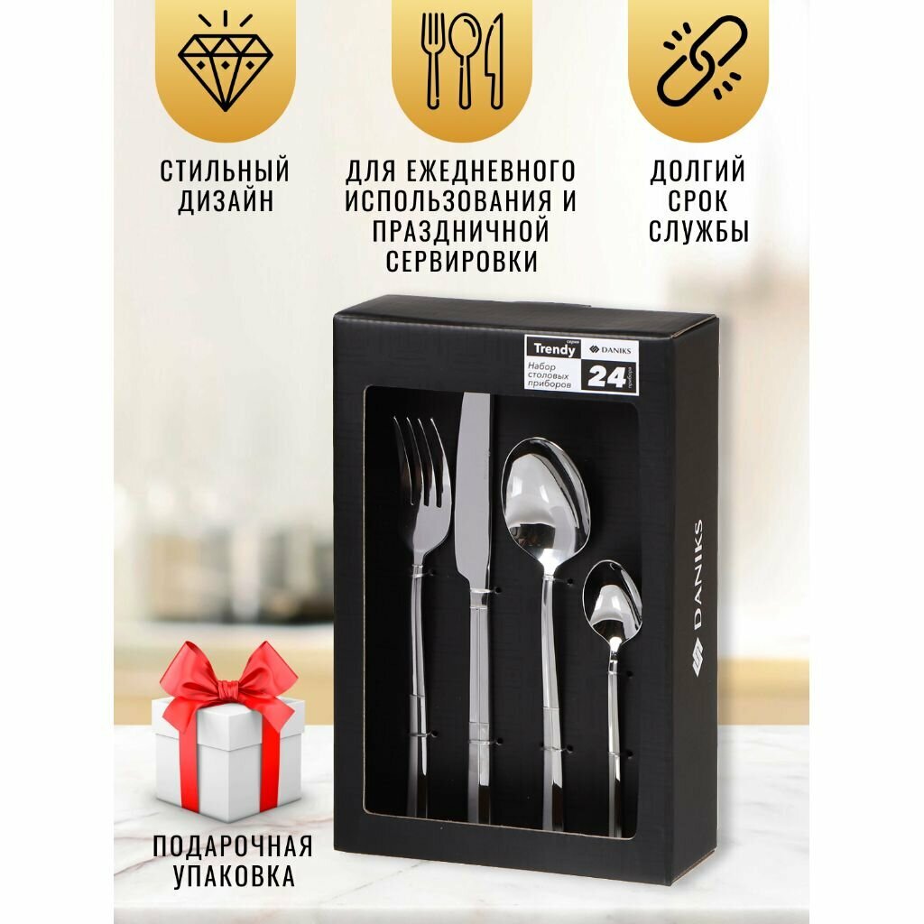 Купить Набор столовых приборов Daniks Trendy, 24 предмета, нержавеющая сталь, для 6 персон, в подарочной упаковке