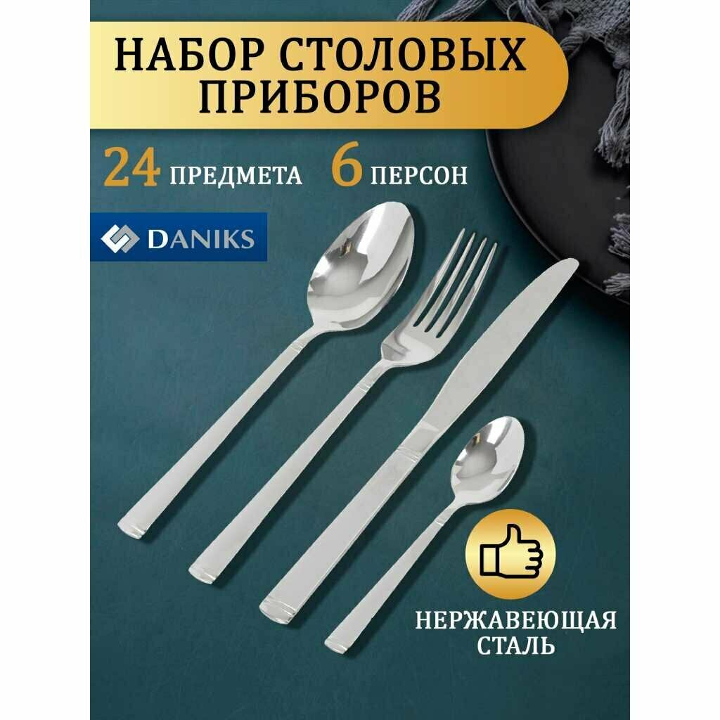 Набор столовых приборов Daniks Dublin, 24 предмета, нержавеющая сталь, серебристый, на 6 персон, в подарочной упаковке