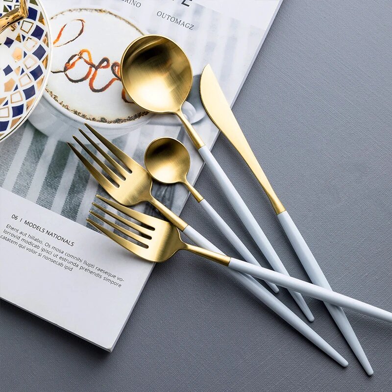 Купить "Элегантный столовый набор на 6 персон из нержавеющей стали в бело-золотом цвете