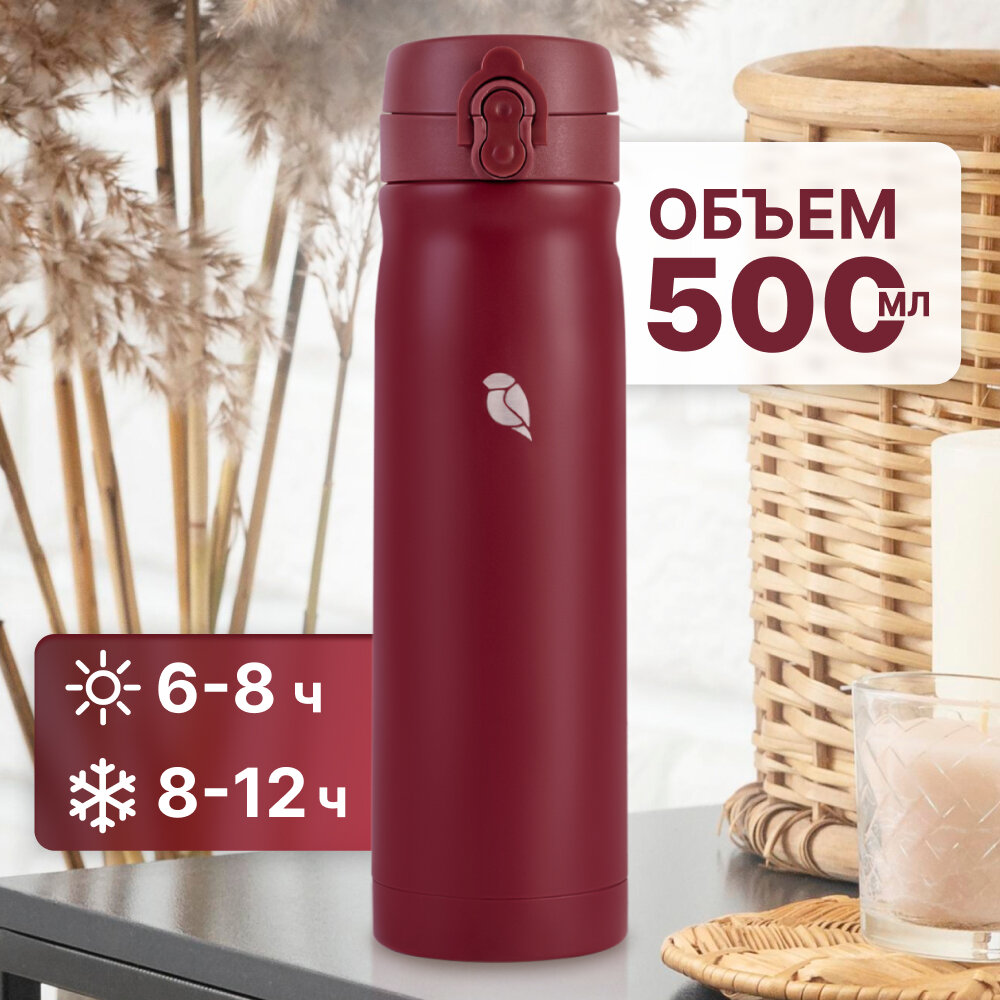 Купить Термос для чая и кофе 0.5 л Sand Lark автомобильный с кнопкой, бордовый