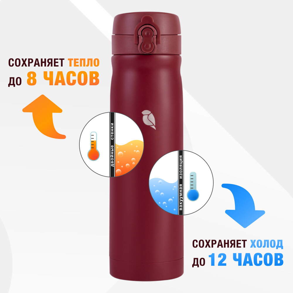 СохранитьТермос для чая и кофе 0.5 л Sand Lark автомобильный с кнопкой, бордовый интересное: