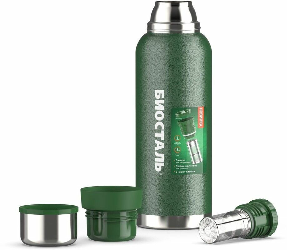 СохранитьТермос Биосталь Biostal для чая и кофе, 1,2 л, 2 чашки, с ситечком, зеленый NBR-1200Z-G интересное: