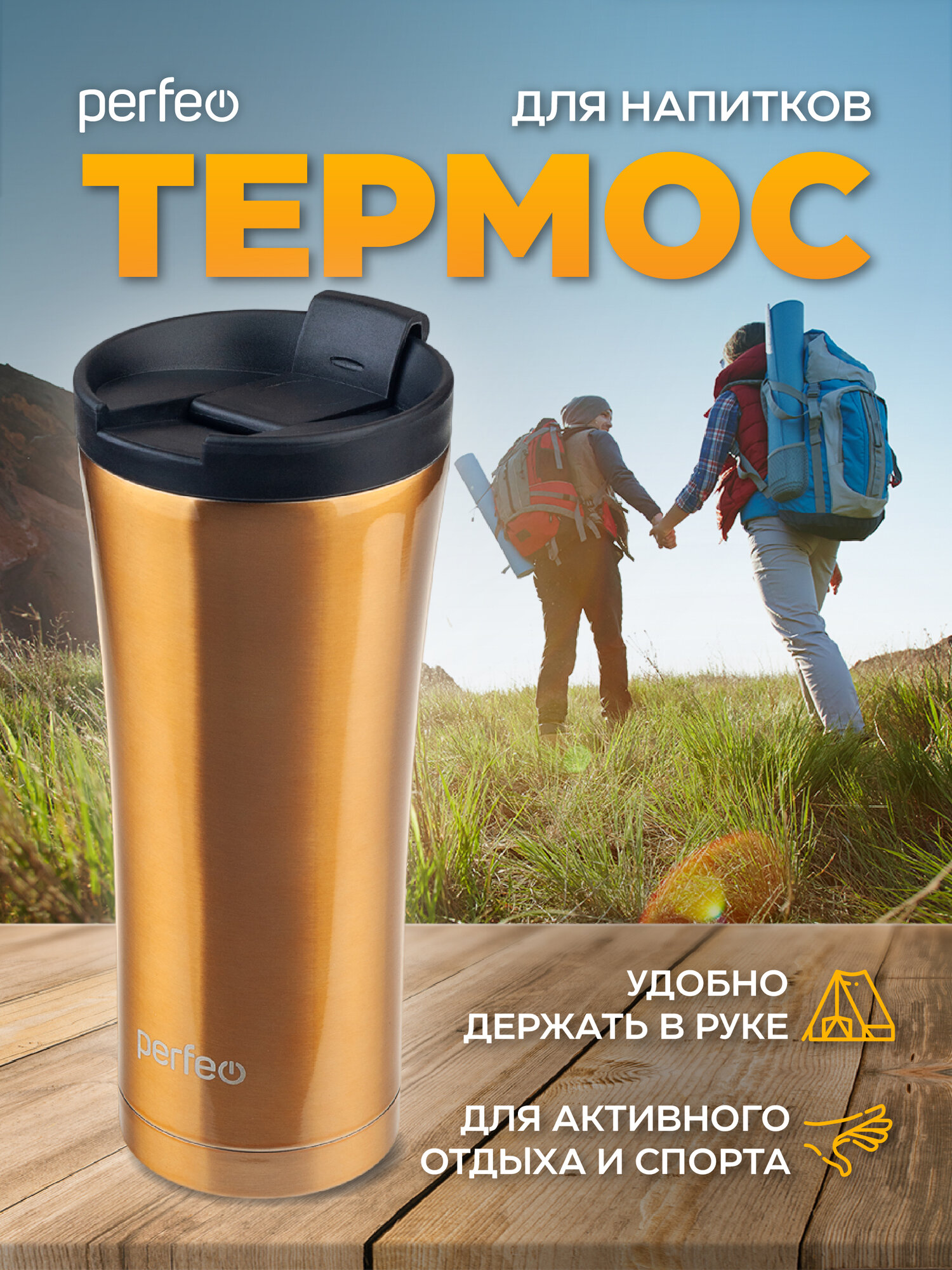 Купить Термокружка PERFEO для напитков с крышкой-поилкой, объем 0,5 л, бронза (PF_D0203)