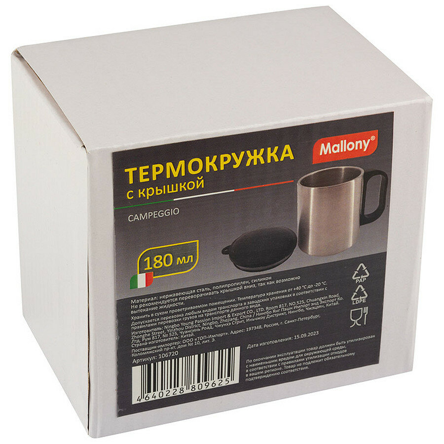 Термокружка из нержавеющей стали объем 180 мл, с пластиковой крышкой с силиконовой прокладкой интересное:
