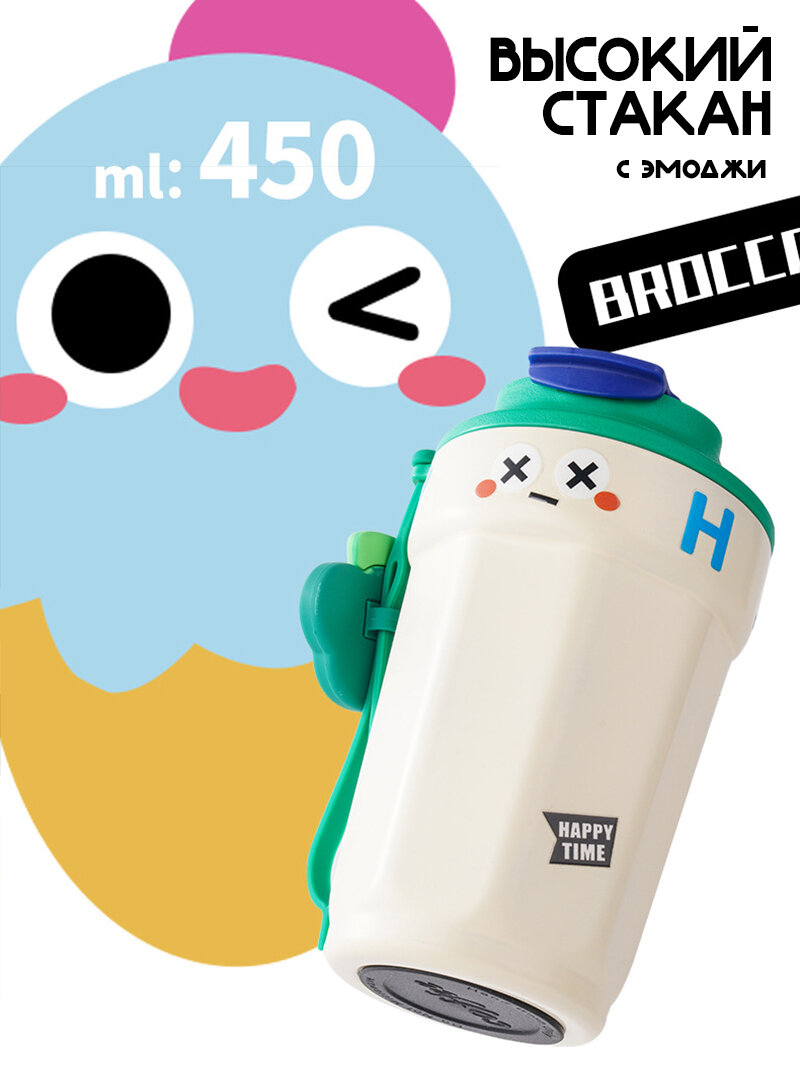 Термокружка для кофе зелёная с ремешком и игрушкой, 450мл