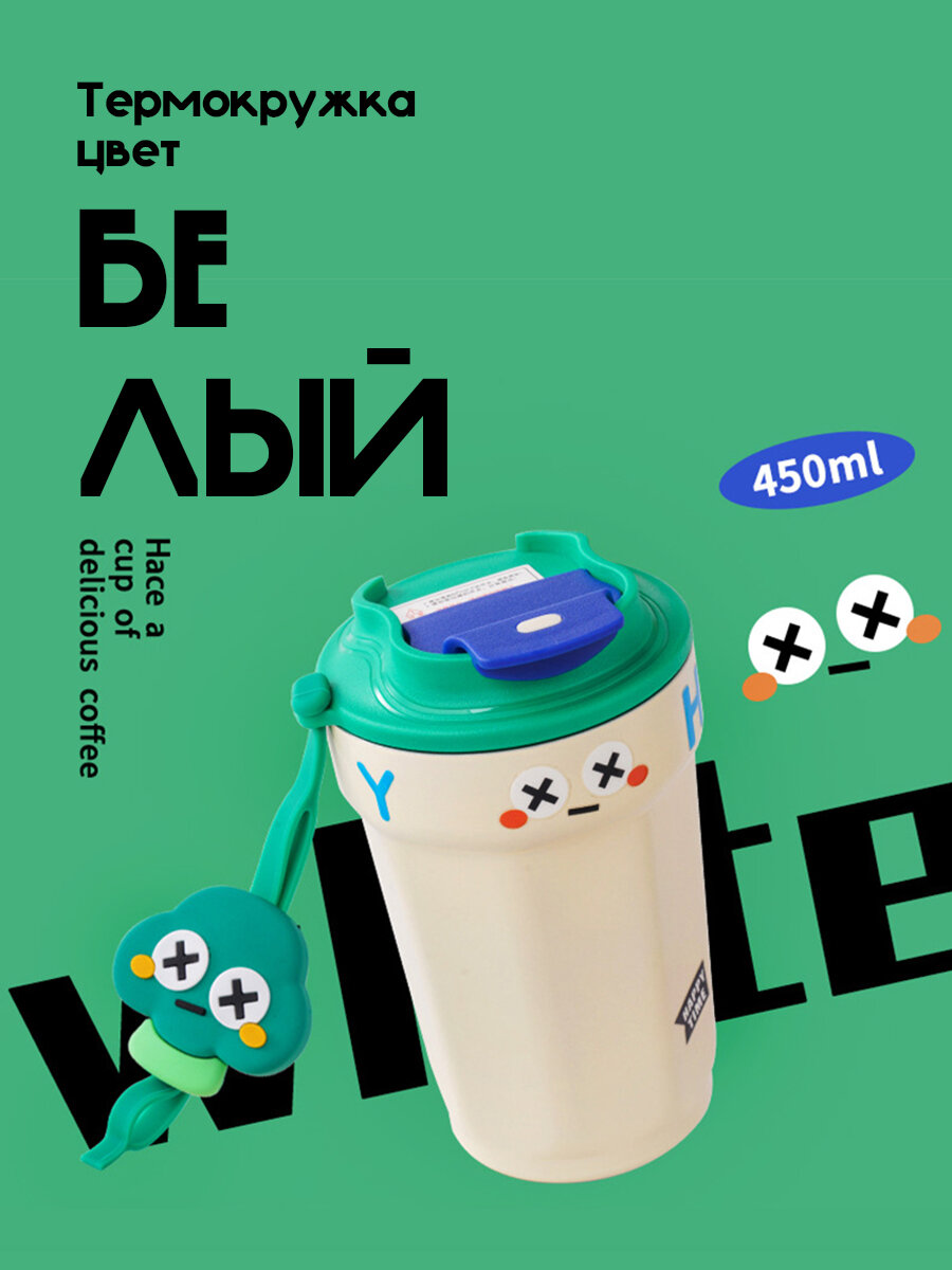 Термокружка для кофе белая с ремешком и игрушкой, 450мл интересное: