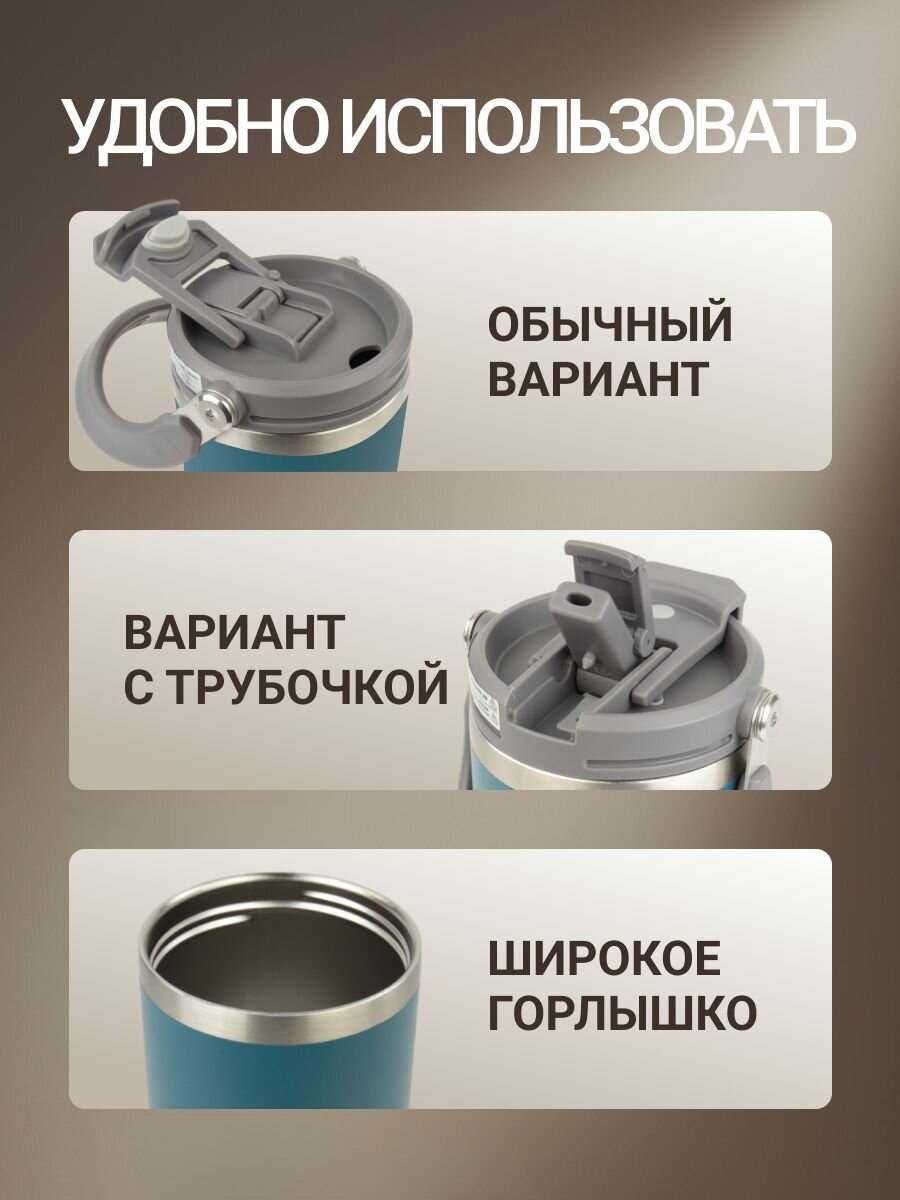 Термос TYESO ts-8828, нержавеющая сталь, вакуумный, с трубочкой, 900 мл