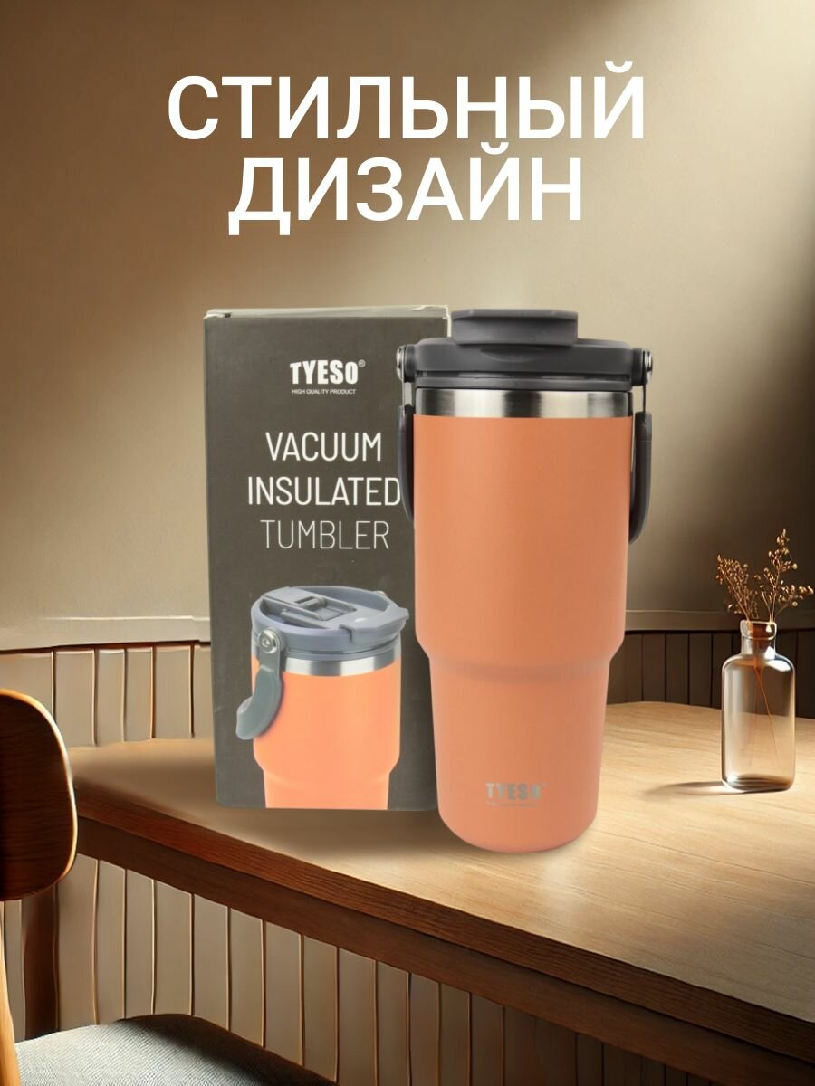 Термос TYESO ts-8828, нержавеющая сталь, вакуумный, с трубочкой, 900 мл