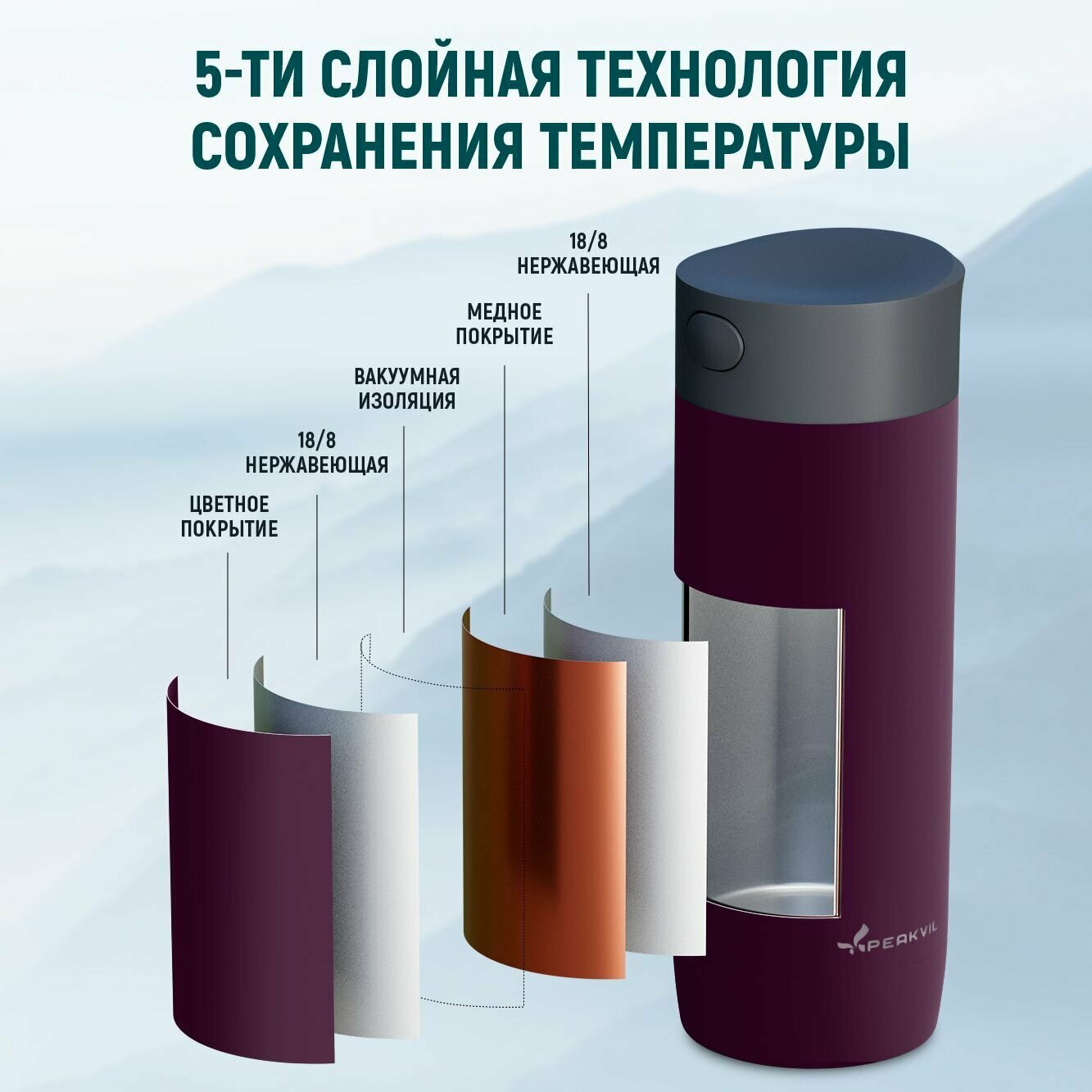 Термокружка Peakvil для чая и кофе, 360 мл ударопрочный корпус интересное: