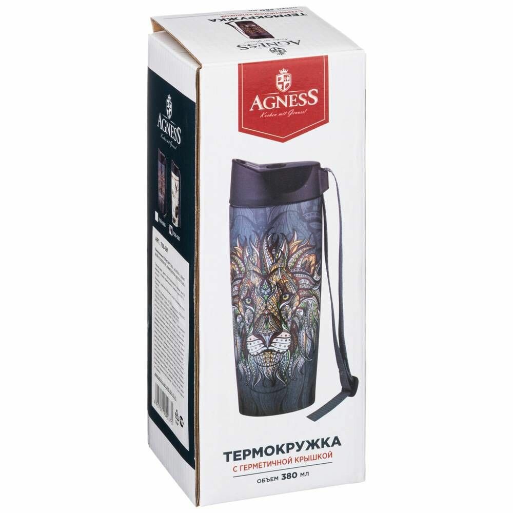 Термокружка Agness "Лев", с кнопкой-стоппером, 380 мл, колба нержавеющая сталь интересное:
