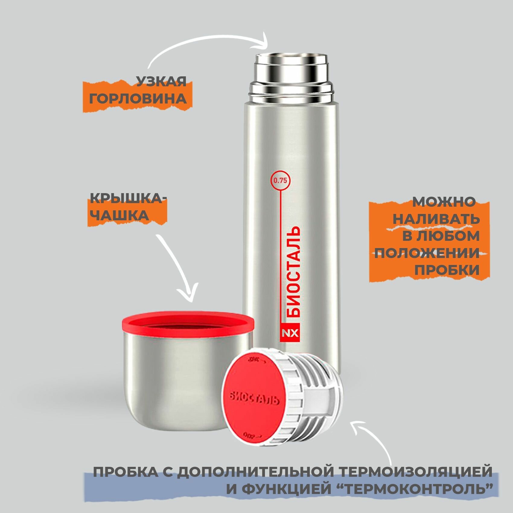 СохранитьТермос 0.75 литра классический, стальной с узкой горловиной, Биосталь/Biostal (750 мл) интересное: