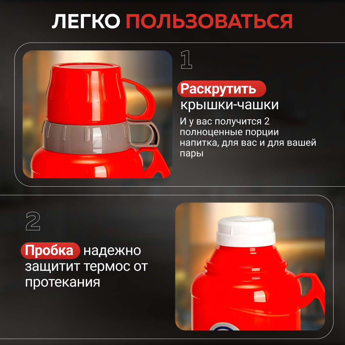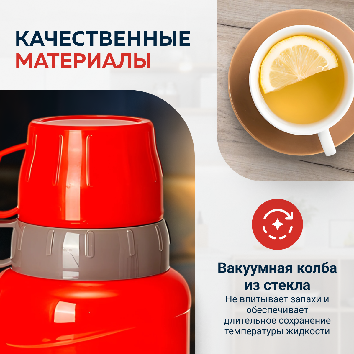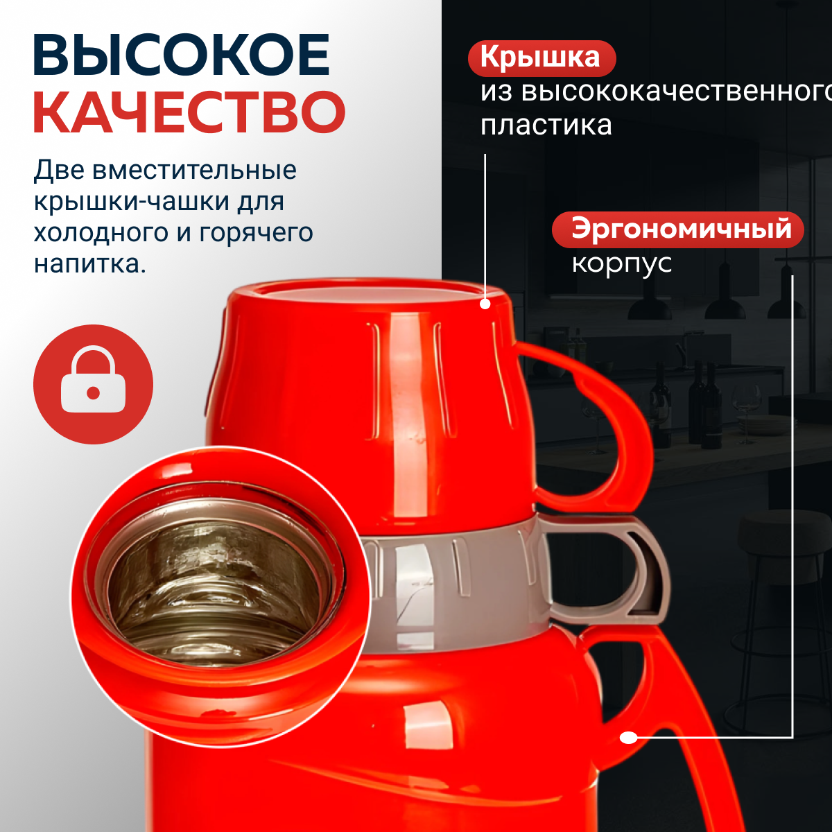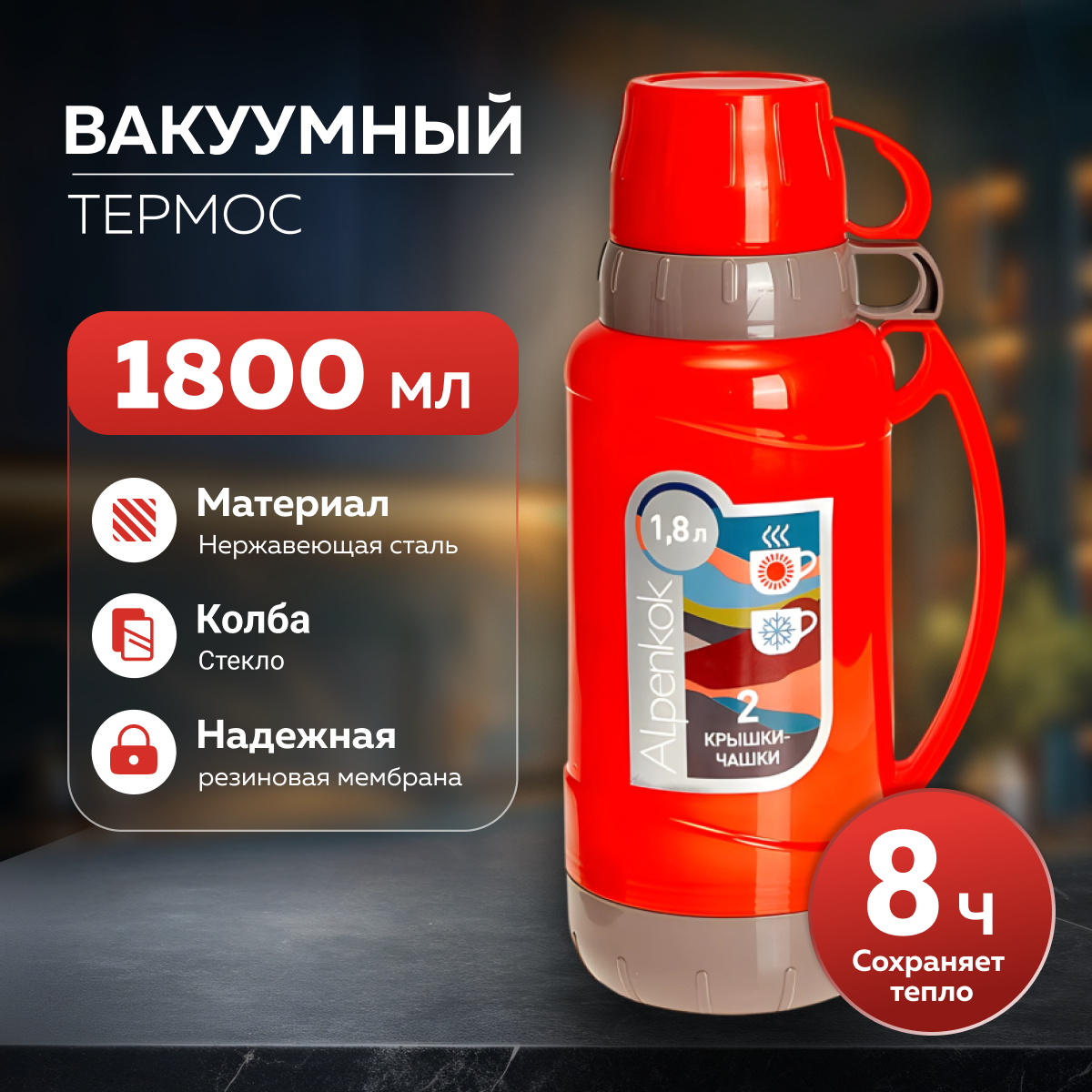 Термос Alpenkok AK-10104S, 1.8л, пластиковый, вакуумная стеклянная колба, 2 чашки - крышки, оранжевый интересное: