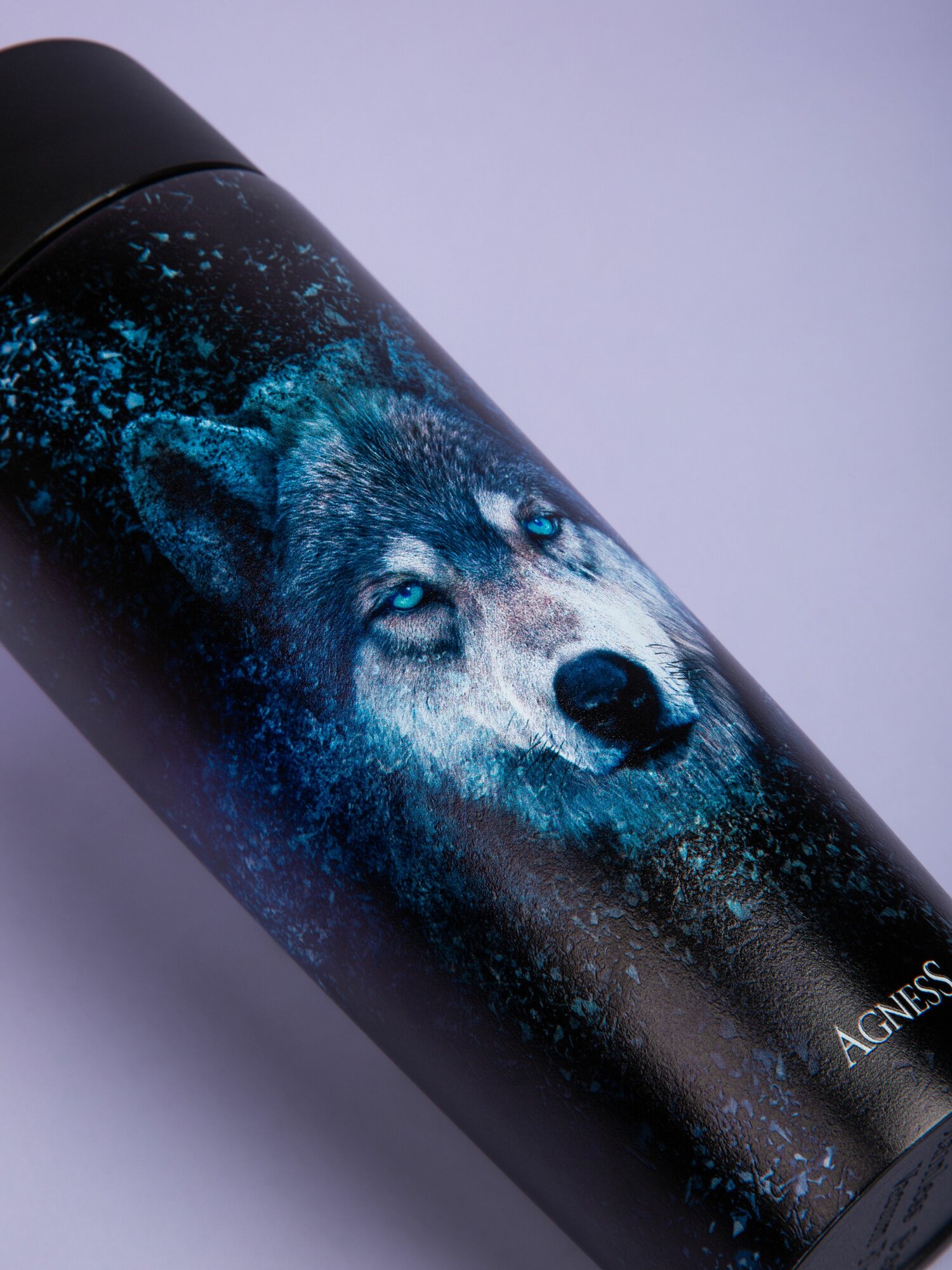 Термокружка Agness "Волк", нержавеющая сталь, 360мл, кнопка-клапан, 360 мл. интересное: